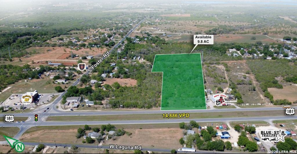 9.8 Acres on US Highway 181 by Foster Rd. - Outside City Limits - Between Braunig Lake and Calaveras Lake - 273 Ft Frontage - Electric and Water at street -