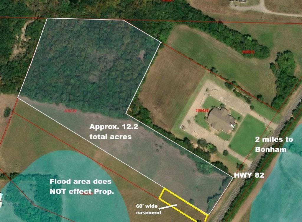 Beautiful Half Treed and Half Open Approx. 12.2 Acre Tract to be surveyed out of larger tract. Treed area is heavily wooded with many large mature trees to carve out your desired Home Location. Property is known to have Deer Crossing on a Regular bases and would be a Great place for a Barndominum or Country Style Home. Owner is a Licensed Texas Real Estate Agent. Culvert will have to be put in at Highway 78, Water Provider is Southwest Fannin SUD and has great water pressure.