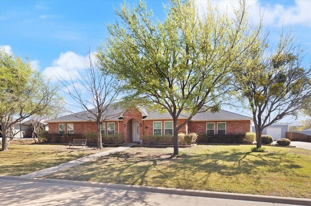 Welcome to this beautifully updated 4-bedroom home offering the perfect balance of peaceful living with convenient access to downtown Fort Worth, just a 30-minute drive away. Step inside to discover a natural light-filled, open-concept layout designed for both everyday living and effortless entertaining. This home has been extensively updated throughout including all flooring (2020), countertops (2020), custom cabinetry (2020), windows (2022), and a new water heater (2026). The spacious living area flows seamlessly into a stunning kitchen, featuring a large island, custom built-ins, and a dedicated coffee bar, perfect for both entertaining and everyday convenience. Designed with both functionality and accessibility in mind, the home offers widened hallways and doorways, along with step-free access to the garage and back patio. The primary suite is a true retreat, boasting a roll-in shower with a built-in seat and an oversized walk-in closet. Storage is abundant throughout, highlighted by an oversized utility room complete with a sink, extensive counter space, and an additional pantry. Step outside to enjoy the impressive, covered patio overlooking a spacious backyard that is ideal for entertaining, relaxing, or creating your own outdoor oasis. A large outbuilding at the end of the driveway provides even more space for storage, hobbies, or a workshop. Situated in a quiet neighborhood, this home offers thoughtful updates, flexible design, and generous indoor and outdoor spaces. 1004 Ridgetop is move-in ready and designed to suit a wide range of needs.