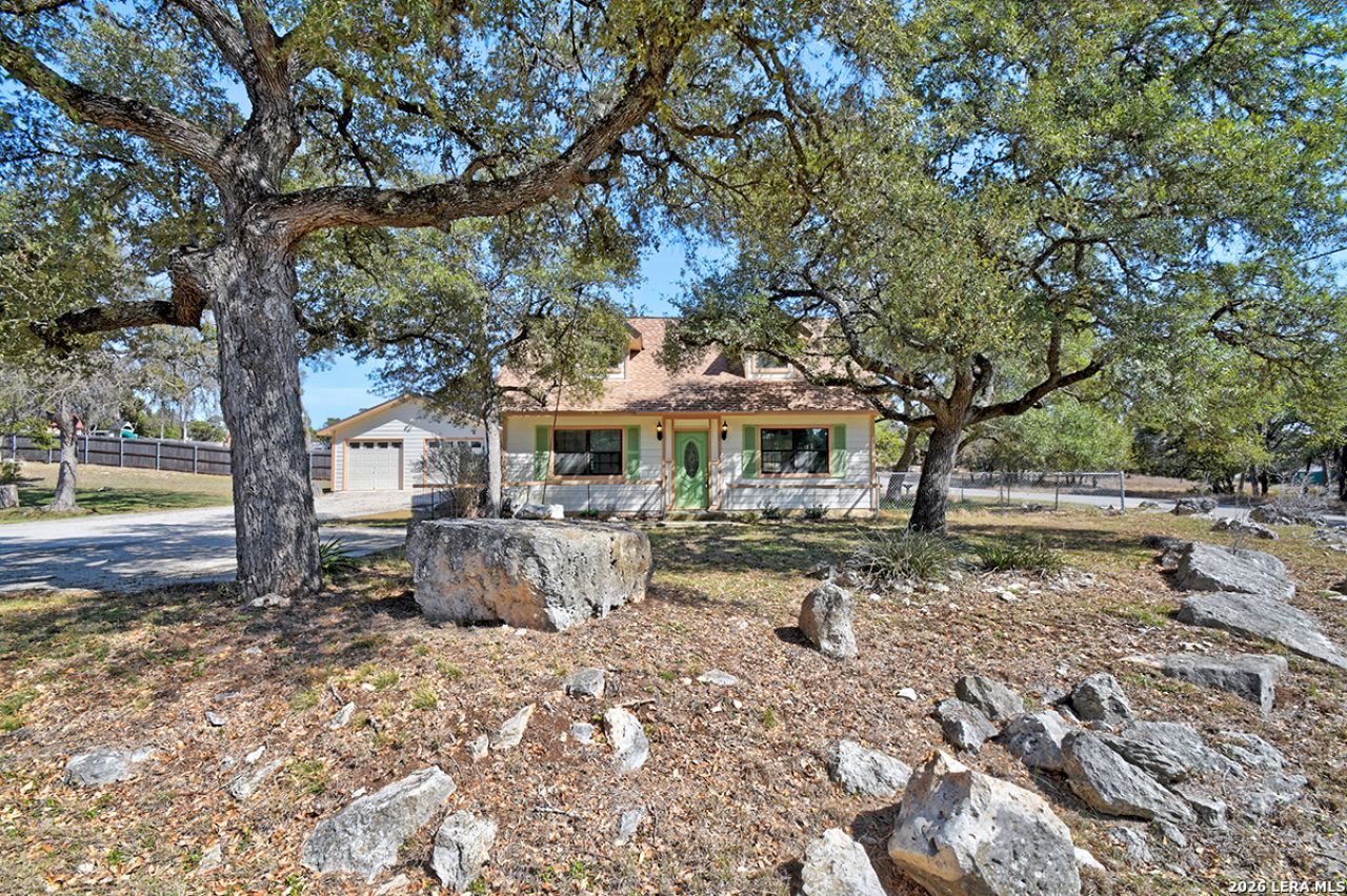 Charming 2-Story Hill Country Home on a Prime Half-Acre Corner Lot in Cypress Cove! Welcome to this spacious two-story gem nestled in the desirable Cypress Cove community, offering easy access to Canyon Lake recreation, Comal ISD schools, and peaceful wooded surroundings. Main level features include a master suite downstairs for ultimate convenience, open living areas, and everyday functionality. Upstairs, enjoy a versatile bonus room perfect for a game room, office, or guest retreat, plus a rare second-story outdoor balcony/porch-ideal for morning coffee or evening relaxation with breezy views. Generous walk-in attic storage, a detached garage workshop for hobbyists or projects, and an extra storage building perfect for your boat, car, or extra gear. Sitting proudly on a half-acre corner lot with room to roam, this property combines privacy, space, and community amenities like nearby lake access, parks, and clubhouse.