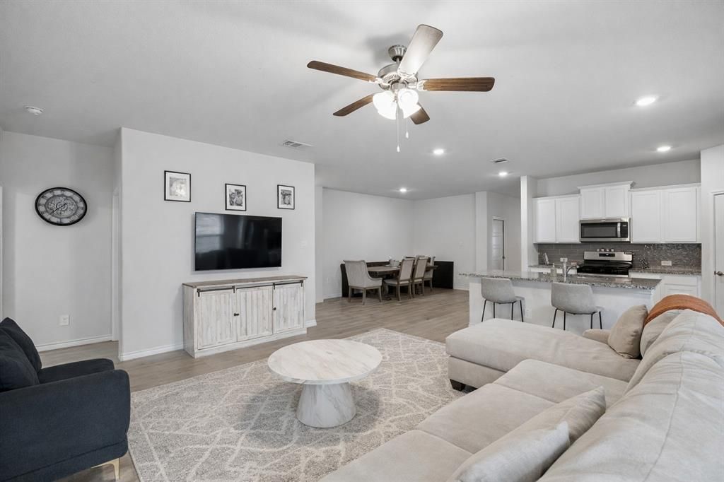 Welcome to this well-maintained 4-bedroom, 3-bathroom single family residence with an office built in 2024, located in a growing Aubrey community. This home offers an open concept layout connecting the living, dining, and kitchen areas, providing functional space for everyday living. The kitchen features modern appliances, ample cabinet storage, and a center island. The primary bedroom includes an ensuite bathroom and walk-in closet. Additional bedrooms and bathrooms offer flexibility for guests, office space, or other uses. Interior features may include updated finishes, neutral color tones, and natural light throughout. The property also includes a fenced backyard with space for outdoor activities, along with a covered patio and attached garage. Conveniently located with access to local schools, shopping, dining, and major roadways. Floor plan and 3D Tour Available!Washer, Dryer, Refrigerator are Included!