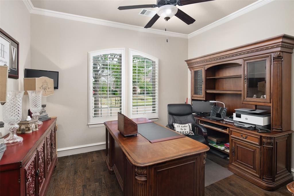 Where Everyday Magic Begins! Imagine turning onto a peaceful corner lot in one of Prospers most beloved neighborhoods and instantly feeling “this could be home.” Nestled on .38 acres, this warm and inviting residence is built for real family living and connection. It’s the perfect setting for your next chapter, where timeless quality meets the opportunity to write your own story. Inside, the open and flowing layout welcomes you with gleaming nail-down hardwood floors and plantation shutters that frame windows filled with natural light. The media room is conveniently located downstairs — ideal for family movie nights without heading upstairs. Generous room sizes give you flexibility for a home office, playroom, or guest suite, while the three-car garage offers plenty of space for vehicles and everyday gear. Step outside to discover your private backyard oasis. A detached kids playroom with electricity creates a magical retreat for imagination and adventure. The true highlight is the expansive covered patio addition — over 400 square feet featuring a built-in gas grill, running water, and power. This seamless indoor-outdoor living space transforms ordinary days into something special. Added peace of mind comes with a brand-new roof installed just one year ago using durable Class 4 hail-proof shingles. Deer Run embodies small-town charm with tree-lined streets and friendly neighbors. Prosper’s highly rated schools, parks, shopping, and dining are just minutes away, while Frisco and McKinney are easily accessible for bigger-city conveniences — all while enjoying the peaceful rhythm of suburban life. This home stands as a beautiful, solid canvas — classic and well-built, ready for your personal style and future memories. Come feel the warmth: hardwood floors underfoot, a gentle breeze on the patio, and the simple joy of a backyard made for living. Here is where your family’s next beautiful chapter begins. Zoned for Walnut Grove HS!