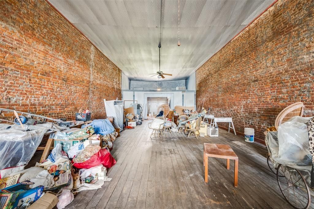The store, built in 1882, stands as a charming relic of the late 19th century, a time when craftmanship and practicality were deeply interwined. Its facade is made of brick and plaster and boasts large windows designed for lots of natural light within. Walk in and find hardwood floors and weathered brick walls, a wide open expanse, ready to be used for retail, restaurant, coffee shop, office, the options are abundant. The back of the building has a bathroom and storage area. From there, you will find access to rear double doors leading to the outside concrete pad with driveway that would be useful for deliveries. Pilot Point is growing, the town square is charming and historic offering endless opportunity for the entrepreneur! Also, 115 S Jefferson is 3 doors to the south and available for sale as well, check out that listing.