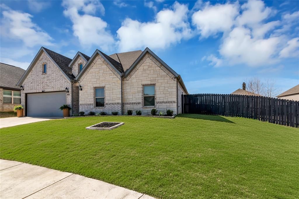 Location, location, location - paired with luxury, comfort, and tranquil living! Tucked away on a quiet cul-de-sac, this stunning one-story, 4-bedroom, 2-bath home offers about 2,000 sq ft of beautifully designed living space in a scenic, tree-lined setting while keeping you close to the best of DFW.Built in 2024 and owned by just one owner, it’s truly move-in ready with eye-catching curb appeal and elevated finishes throughout. Inside, a light, neutral palette with custom accent tones, high ceilings, and abundant natural light create a bright, welcoming feel.The open-concept living area is ideal for everyday comfort and entertaining, featuring a sleek electric fireplace, custom built-ins, and a wall of windows that fills the space with daylight. The chef’s kitchen connects seamlessly and shines with ceiling-height cabinetry, stainless steel appliances, and a large walk-in pantry.Privately positioned at the back of the home, the light-filled primary suite features an ensuite bath with a garden tub, dual vanities, a walk-in shower, and a spacious walk-in closet. Secondary bedrooms are generously sized with vaulted ceilings for added character and openness.Step outside to a spacious covered patio overlooking a fenced backyard ready for relaxing, recreation, and gatherings. Pet lovers will especially appreciate the high-end, discreet doggy door, thoughtfully designed for convenience without compromising the home’s polished look.The location seals the deal: approx. 10 miles to downtown Fort Worth, 25 miles to downtown Dallas, 20 miles to DFW Airport, and 8 miles to Arlington’s AT&T Stadium, with the closest mall being just 5 miles away. Within the surrounding 2 miles, you’ll find mature trees, two equestrian facilities, and two large parks with trails, playgrounds, and scenic waterways - all while remaining close to grocery stores, shopping, and daily essentials.