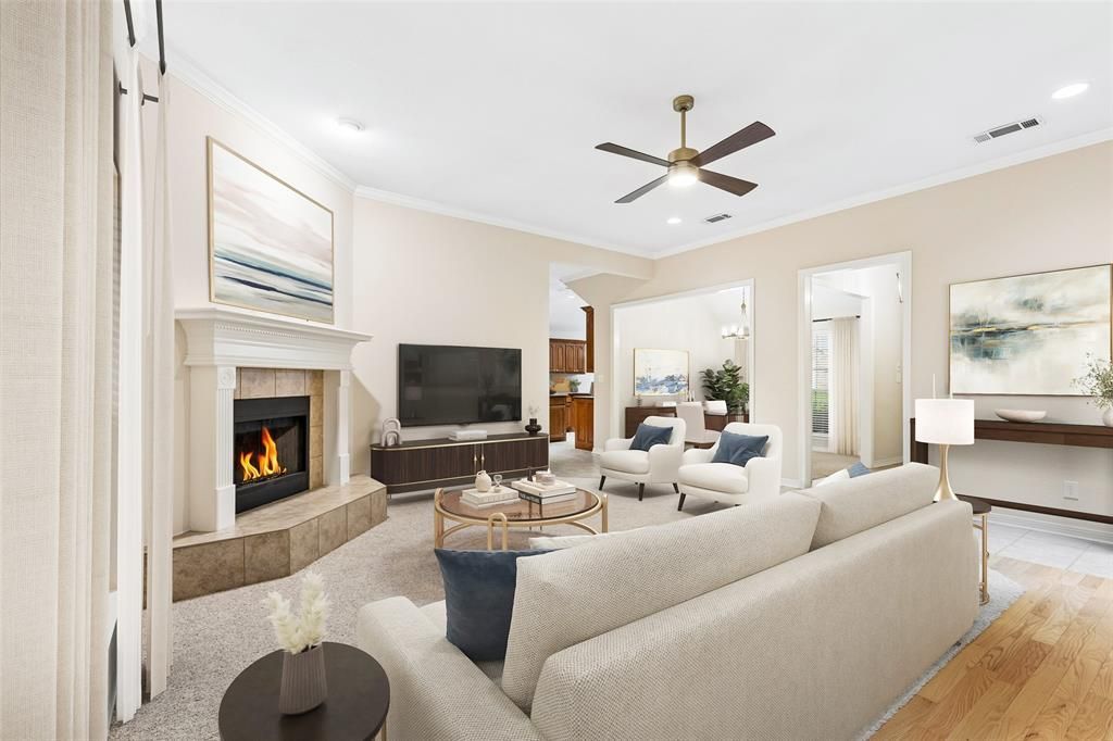 Welcome to easy, low-maintenance living in this beautifully maintained home located in a highly sought-after 55+ gated community. Perfectly positioned next to a peaceful park with expansive green space, this property offers added privacy and a serene setting while remaining within walking distance of one of Cedar Hill’s premier shopping and dining destinations, Hillside Village! One of the larger floor plans in the community, this home offers approximately 2,286 square feet with a flexible 3-bedroom, 2.5-bath layout designed for both comfort and functionality. The spacious, open-concept living area is filled with natural light and enhanced by crown molding, hardwood flooring, new carpet, and a cozy fireplace, creating a warm and inviting atmosphere ideal for everyday living or entertaining. A second living area with hardwood flooring provides additional versatility—perfect for a den, home office, or hobby space with views of the neighboring park. The kitchen features granite countertops, abundant cabinetry, a removable island, and custom built-ins in the breakfast area that add both charm and practical storage. The private primary suite offers dual vanities, a garden tub, separate shower, and two walk-in closets. Secondary bedrooms provide flexibility for guests or workspace, while the laundry room includes built-in cabinetry for added functionality. Enjoy a true lock-and-leave lifestyle with an HOA that covers lawn care, cable TV, and internet, along with access to a clubhouse, ponds, and community social activities. If you’re looking for a home that combines space, flexibility, and low-maintenance living in a vibrant active adult community, this is an exceptional opportunity you won’t want to miss.