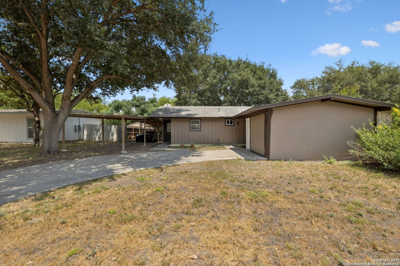 Welcome to Your Dream Home-Just Minutes from Lackland AFB! Step into this beautifully remodeled one-story gem that blends timeless charm with modern upgrades. With no HOA, youll enjoy the freedom to personalize and expand as you please. Key Features: - Modern Upgrades Throughout: Brand-new tile flooring, updated kitchen cabinets, and a fully renovated primary bathroom. - Stylish Touches: Custom hand-made vanity in the half-bath adds a unique, artisan feel. - Appliances Included: Refrigerator and stove come with the home-move-in ready! - Comfort & Efficiency: Nearly new A/C and water heater for peace of mind. - Spacious Parking: New carport accommodates at least three vehicles. - Bonus Storage: Shed with washer and dryer connections and electricity-perfect for a workshop or extra storage. This home offers the perfect blend of comfort, convenience, and character. Whether youre a first-time buyer, military family, or savvy investor, this property is a must-see.
