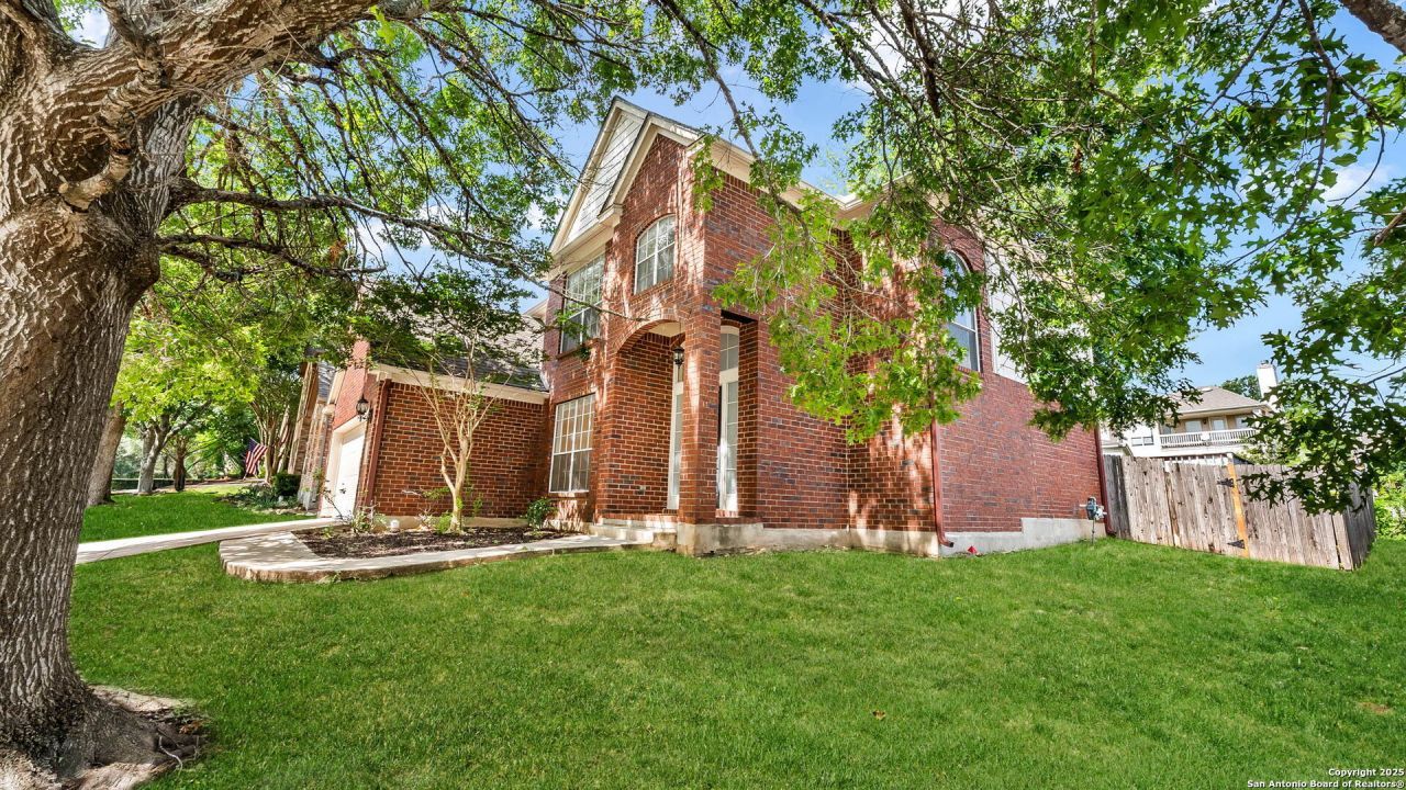 Grand Two-Story Home on a Spacious Corner Lot with Pool - Gated Community Living Welcome to this impressive two-story home nestled on a large corner lot shaded by mature trees in a serene, gated neighborhood. With a unique and flexible layout, this home offers the perfect blend of style, comfort, and versatility. Step through the vaulted entryway adorned with crown molding and chandelier into a space that immediately feels like home. Featuring 4 generously sized bedrooms with walk-in closets and upgraded high-end laminate flooring-this home has no carpet, offering both elegance and easy maintenance throughout. The heart of the home is the open-concept island kitchen with a breakfast bar, newly installed granite counter tops and tile backsplash, casual dining area, and an adjacent flex space that can be tailored to your needs-ideal for a sitting area, informal dining, or a cozy workspace. A separate formal dining room near the entry offers additional flexibility and can easily be converted into a study. Entertain with ease in the spacious family room with views of the backyard and pool, all centered around a see-through fireplace that connects the family room and kitchen area-creating a warm, inviting flow throughout. Upstairs, all bedrooms are conveniently located, including a luxurious primary suite featuring a large en-suite bath with double vanities, an oversized countertop, separate garden tub, and walk-in shower. Enjoy year-round comfort with dual HVAC systems and create your own backyard oasis with a sparkling in-ground pool, deck, and patio-perfect for relaxing or entertaining. Located just minutes from UTSA, USAA, the Medical Center, shopping, dining, and top-rated schools, this home truly has it all. Dont miss your opportunity-schedule a showing today. You wont be disappointed!