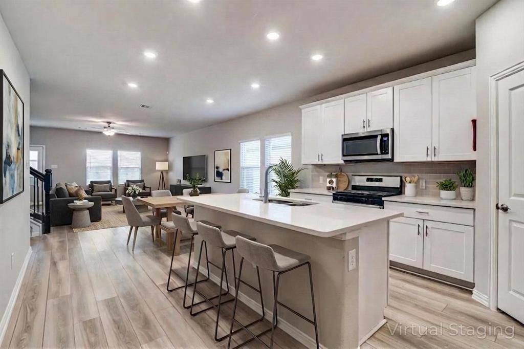 Welcome home to this spacious 4-bedroom, 2.5 bath rental with a dedicated office, elevated ceilings, abundant natural light, and a layout perfect for everyday living and entertaining. The beautifully appointed open-concept kitchen features quartz countertops and stainless steel appliances, while the upstairs loft offers flexible space for a second living area, office, gym, or playroom. This home truly shows like brand new. In addition to your own fenced in backyard and patio, you'll enjoy fantastic community amenities, including a pool, green space, playground, and a scenic pond with a fishing pier. Conveniently located near shopping, entertainment, schools and major roadways, this home offers comfort, style, and conveniences all in one.