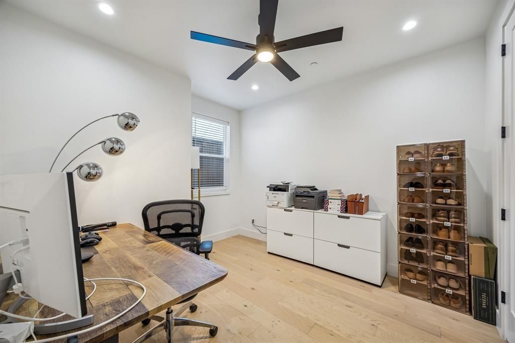 Modern farmhouse–inspired townhome ideally located near the Bishop Arts District in Oak Cliff. Thoughtfully designed floor plan offers two bedrooms upstairs and a spacious first-floor office. This sleek townhome showcases an open-concept entertaining layout with tall ceilings, luxury vinyl plank flooring, and clean-lined modern finishes throughout. The chef’s kitchen is equipped with stainless steel appliances, quartz countertops, and a large peninsula island with bar seating, ideal for both everyday living and hosting guests. Enjoy a welcoming community greenspace at the front of the building and a prime location on a quiet street just minutes from Methodist Hospital, the Bishop Arts District, and Downtown Dallas—offering convenient access to dining, entertainment, and major employment centers.