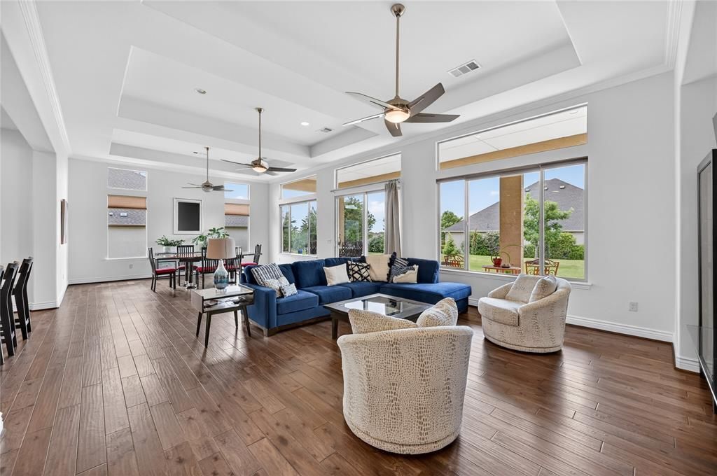 RARE, OVERSIZED CORNER LOT in Robson Ranch, North Texas’ premier 55+ Active Adult community! This upgraded Rialta floor plan offers unmatched comfort and class. Meticulously maintained and improved by an artist who values quiet serenity, this home blends an unusual level of privacy with a generous amount of natural light. The open great room flows uninterrupted into the dining room and well-appointed kitchen. Beautiful granite counters, vented exhaust, a walk-in pantry, and premium stainless steel appliances and cooktop provide ample space and utility to handle any event you might host. Take special note of the custom, stained-glass backsplash that was created by the owner and has a unique way of relieving stress while you cook. The covered back patio is positioned perfectly to showcase breathtaking sunsets.A flex room off of the front entry boasts a utility sink, making it the perfect place for a hobby room, and a large office or den is situated between the bedrooms. The secondary bedroom has its own convenient en suite. Step into the owner's suite, through the custom barn door, and bathe in peace and luxury in the insulated tub. Other highlights include copious shower and closet space, dual vanities, radiant barrier, insulated garage, laminate floors (2021), new dishwasher (2025), master closet carpet (2026).Robson Ranch has gated access, a 27-hole championship golf course, restaurant, indoor & outdoor pools, fitness center, 16 pickleball courts, 6 tennis courts, multi-purpose gym, saunas, salon, a bank, library, dog park, walking and biking paths, fishing lake, community garden, and softball field. The Creative Arts Center has a full woodworking studio, arts, crafts, and sewing rooms, a ceramics and pottery studio, and art gallery. This NTX oasis is conveniently close to stores, shopping, hospitals, and banks.Don't wait on new construction; begin writing the next chapter of your story now at 11804 Willet Way! Strategically priced to sell!