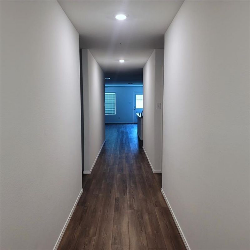4 bedroom 2 bath 2 car garage (with opener) single family smart home built in 2021. Nest thermostat, doorbell camera (projected to a screen in the front hallway) 3 security cameras and a smart lock. Central heat (gas) and air, automated sprinklers and a whole-house water filtration system. The water filter and AC filter will be changed every 3 months by the management company. Fenced back yard and a covered porch big enough for rockers. Laminate floors throughout and carpet in every bedroom. Separate laundry room for full size washer and dryer. The kitchen has a gas stove, built-in microwave and a kitchen island with a faucet and dishwasher. Three bedrooms and guest bath are in the front of the house and the master is in the back. Large walk-in closet in the master bath and both bathrooms have tubs and showers. Rent includes security system monitoring, yard maintenance and pest control every 3 months. Renters insurance required. Information reliable but not guaranteed. Pros. Tenant to verify all facts.