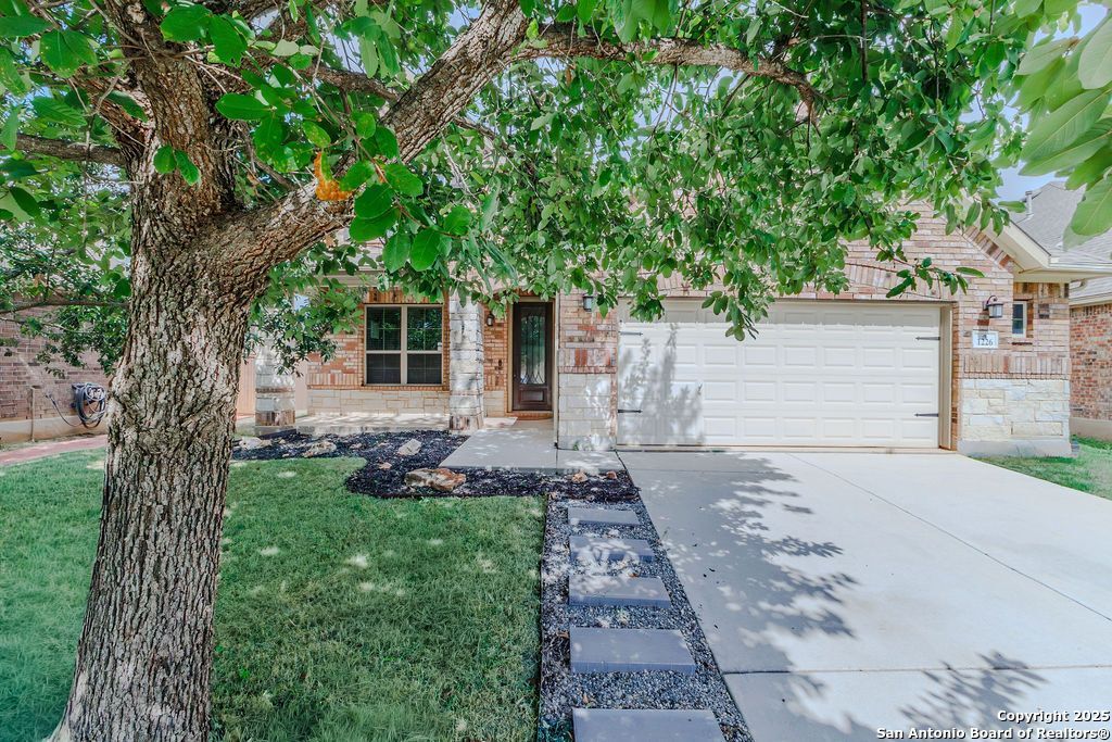 Tucked into a quiet, walkable neighborhood in New Braunfels, 1226 Hidden Cave offers the perfect blend of warmth, space, and smart design-featuring a primary suite on the main floor and a guest suite upstairs, ideal for flexible living arrangements. From the moment you walk in, youre welcomed by soaring ceilings, an abundance of natural light from double-hung windows, and updated waterproof hardwood-style flooring that adds both beauty and durability. The open-concept kitchen with a gas stove flows effortlessly into spacious living areas, complete with custom built-ins and views of the freshly landscaped backyard with private easement access. Imagine sipping your morning coffee on a neighborhood stroll, then returning home to work or relax in one of the multiple living or flex spaces tailored to your lifestyle. This home ensures comfort and convenience from day one. Enjoy peace of mind and financial perks with a 3.125 VA assumable loan (for qualified buyers) or a lender credit when using the sellers preferred lender. With .206 acres, thoughtful upgrades, and timeless curb appeal, this home invites you to settle in and stay awhile-dont miss your chance to make it yours.