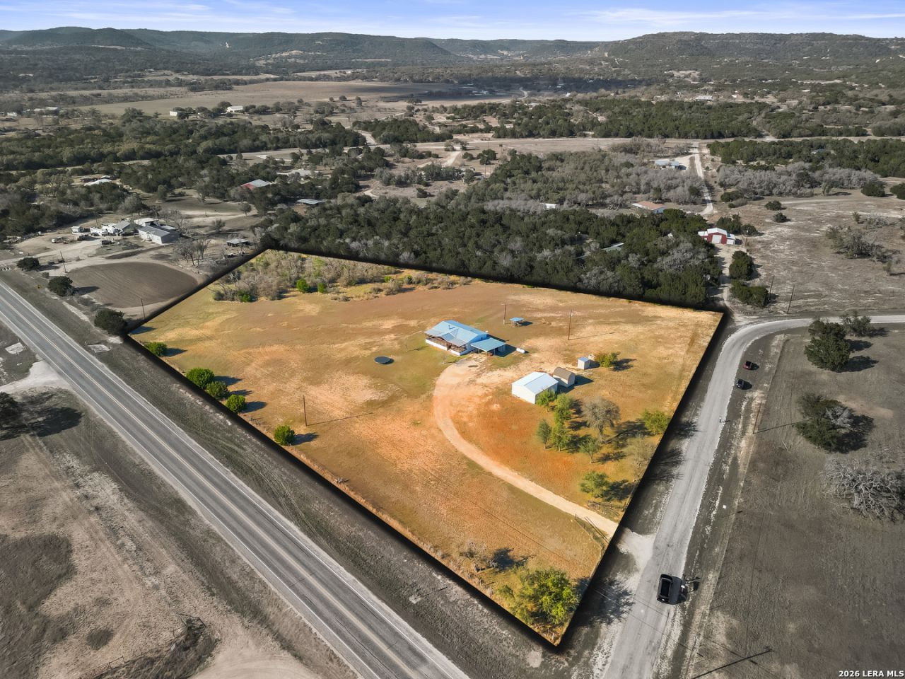 Welcome to your own private retreat at 127 Windmill Drive in Bandera, Texas-where wide-open skies and breathtaking Hill Country views create a backdrop that truly looks like a painting. Situated on 5 unrestricted acres, this property offers the freedom to live the lifestyle youve been dreaming of. Bring your horses or small livestock, start a garden, or simply enjoy the space and privacy-there are no restrictions holding you back. This inviting 3-bedroom, 2-bathroom home features high ceilings and a bright, open-concept design connecting the living room, kitchen, and dining area-perfect for gathering with family and friends. The layout feels spacious yet cozy, making it a wonderful place to live. Large covered front deck and take in the incredible Hill Country views while enjoying your morning coffee or evening sunsets. Its the kind of peaceful setting that never gets old. The property is fully fenced and gated, offering security and peace of mind. Youll also appreciate the large workshop-ideal for hobbies, projects, storage, or working on equipment-as well as a 2-car carport for convenient covered parking. A new hot water heater adds extra value and peace of mind. Enjoy the quiet of country living while still being conveniently located-just 10 minutes to downtown Bandera and approximately 26 minutes to Kerrville.f youve been searching for acreage, views, and the freedom to truly enjoy the Texas Hill Country lifestyle, this property is ready to welcome you home