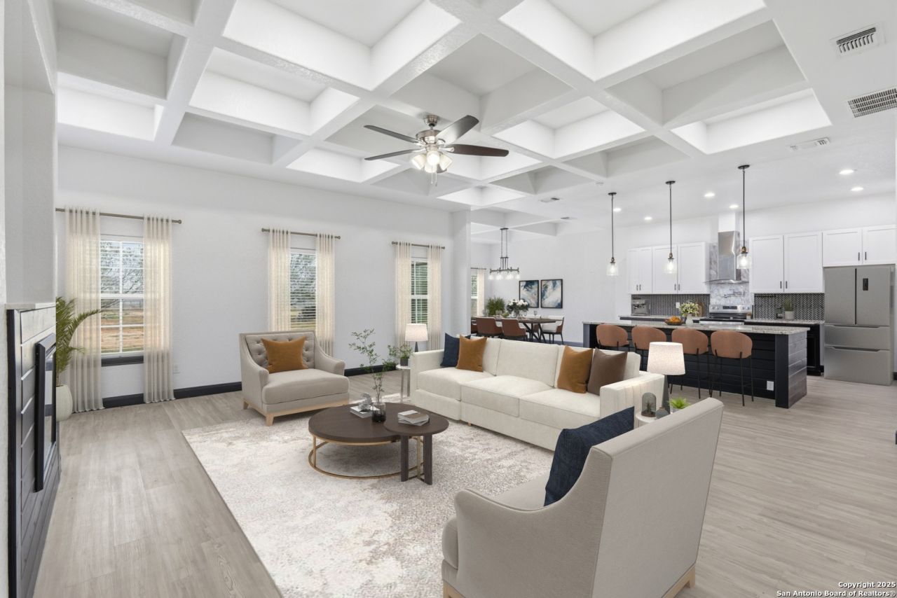 $10,000 Buyers Concessions! Welcome to this beautiful recently built custom home, perfectly situated on over an acre lot in the peaceful countryside of Floresville, TX offering freedom and space, with No HOA dues. This remarkable property features a versatile layout with 5 bedrooms and 3.5 bathrooms, designed with an inviting open-concept floor plan, high ceilings, recessed lighting, and elegant finishes throughout. The home includes dual master suites, providing flexibility for hosting guests with ease. The heart of the home is the oversized kitchen, complete with a beautiful quartz island, stylish backsplash, black & white cabinetry, and stainless steel appliances ideal for entertaining, family gatherings, or culinary adventures. The primary suite offers a spacious bedroom, a gorgeous ensuite bathroom with a custom tiled walk-in shower, dual vanity, and a grand custom walk-in closet with built-in mirror. Additionally the large sized bedrooms ensure comfort for the whole family. Outside, the expansive front and back yards offer endless opportunities for gatherings, play, and relaxation. Combining comfort, style, and country tranquility, this beautiful home is truly a must-see and ready for its new owners today!