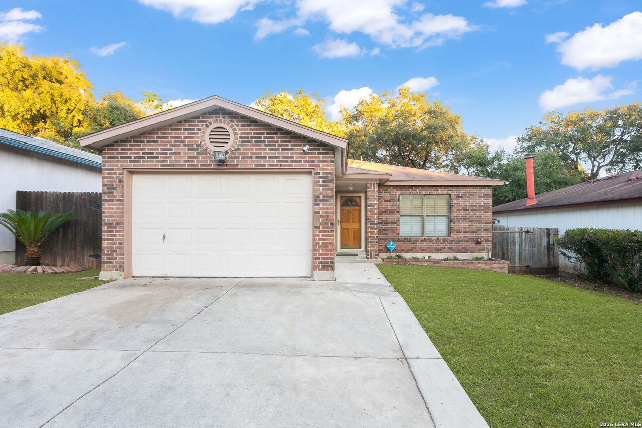 Charming single-story home in the desirable Hunters Chase community featuring 3 bedrooms and 2 full baths with a functional layout and inviting cottage-style appeal. The spacious living area offers a cozy fireplace, creating a warm and comfortable atmosphere, while the separate kitchen includes updated appliances and efficient workspace. All bedrooms are conveniently located on one level, including the primary suite. Step outside to a large back patio, perfect for relaxing or entertaining. Situated in an established neighborhood with easy access to Loop 1604, shopping, dining, and major employers, this home offers both comfort and convenience in a prime Northwest San Antonio location.