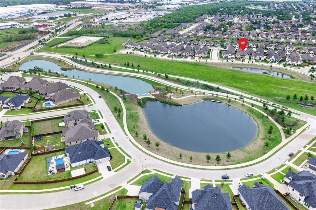 This exceptional single-story home is located in the highly sought-after M3 Ranch, offering wonderful community amenities including a resort-style pool, park and clubhouse. Enjoy close proximity to the public library, Man’s Best Friend Dog Park, Mansfield Activity Center, Elmer W. Oliver Nature Park. The highly anticipated development, The Reserve, is set for completion in 2027. It will offer nearby riverwalk-style area within walking distance of the subdivision and include restaurants, hotels, shopping and a beautiful view!Designed with both comfort and entertaining in mind, the home features an open-concept family room, wide-plank flooring in natural tones, and expansive sliding glass doors that seamlessly connect to a generously sized outdoor patio. A versatile bonus space offers the perfect setting for a first-floor media room, game room, or flex space, an uncommon find in a one-story layout. There are over $100,000 in builder upgrades! Be sure to notice the beautiful Knotty Alder wood throughout the kitchen, laundry and family room! The natural color of the wood flooring is sleek and stylish.Plantation shutters add timeless elegance throughout, while the thoughtfully designed split-bedroom floor plan provides enhanced privacy. Ideally positioned on a 70-foot lot, the home enjoys tranquil views of the greenbelt and pond just across the street. Be sure to ask about our 3D virtual tour!