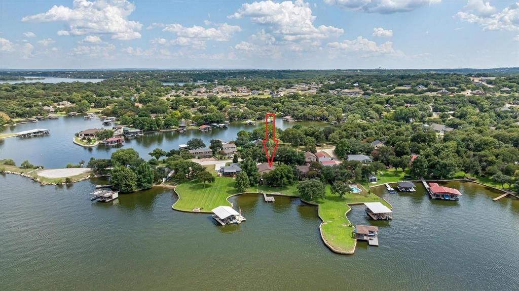 A rare find, walk-out water, on main body Lake Granbury, with deep water, a private swimming cove, spectacular views, awesome sunsets and a totally renovated lake house. This one has it all and is perfect for a vacation rental property. There is 79 feet of waterfront property to enjoy with a durable, long lasting, TREX fishing dock and a private community boat ramp. The newly renovated house has been expanded to 3581 square feet with 4 bedrooms (2 are master bedrooms and both located on the first floor), 3.5 baths plus a dedicated office. The kitchen, dining, guest lake suite and living areas all offer incredible views that are truly breathtaking! The versatile upstairs bedrooms are currently being used as a craft room and a man cave, but there are so many possibilities with the upstairs space and could be easily adapted to suit various needs. There is a model train room that could serve as an additional office or playroom. Outdoor living is gorgeous with mature pecan and oak trees, horseshoe pit and ample opportunities for fishing and swimming. The backyard is the perfect place to enjoy views of the lake, drink your coffee, entertain guests or watch the sun set with a glass of wine. This property could be your dream home on the lake, a weekend getaway or even a great short term rental investment. The guest lake suite is handicap accessible with a large closet and awesome lake view. The home offers abundant climate controlled storage, including a walk-in attic storage and a mini-split AC unit in the garage. This property is nestled at the end of a quiet cul-de-sac. This is a truly exceptional property! Come take a look and dip your toes in the lake.