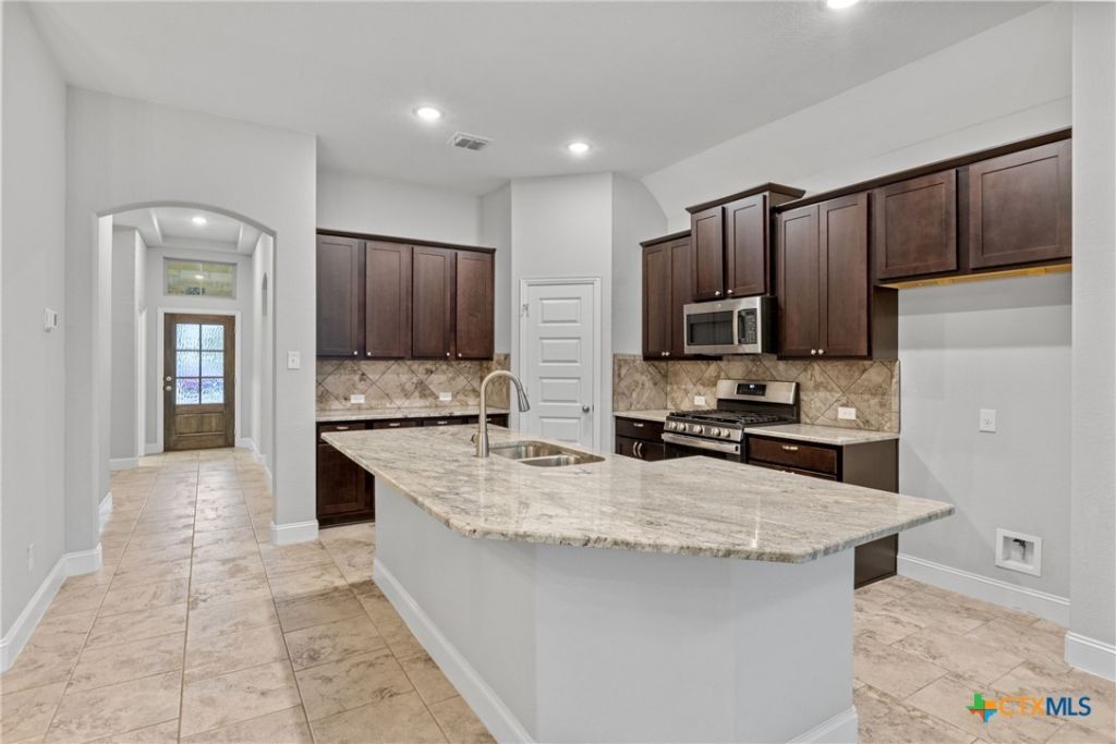 Beautifully maintained one-story home in the highly sought-after Gruenefield community, just one mile from iconic Gruene Hall. Built in 2020, this 4-bedroom, 3-bath residence showcases numerous upgraded design features and impeccable care throughout. The spacious kitchen offers stainless steel appliances, a gas cooktop, built-in microwave, granite countertops, and a large island perfect for meal prep or gathering with guests. Tile flooring flows throughout the main living areas, and every room includes a ceiling fan for added comfort. The primary suite features a generous walk-in shower and a thoughtfully designed layout. Additional highlights include an upgraded wood-and-glass front door with storm door, garage attic access with added flooring for extra storage, a water softener, and an extended covered back patio ideal for outdoor relaxation. The backyard is enhanced with two storage buildings, providing ample space for tools, hobbies, and seasonal items. This home is exceptionally clean, well-maintained, and move-in ready. A must-see property in a fantastic location ? enjoy the charm of Gruene just minutes from your doorstep.