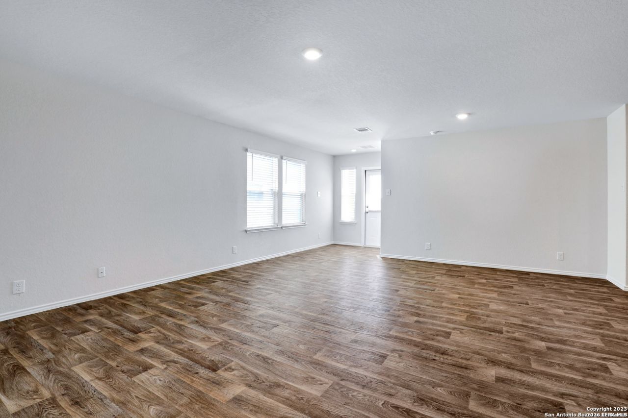 This inviting, move-in-ready home offers a functional open floor plan with a spacious living area downstairs and an additional large living space upstairs, providing flexibility for entertaining, relaxing, or working from home. The well-designed kitchen features granite countertops, stainless steel appliances, gas cooking, and ample storage. The private primary suite is conveniently located on the first floor, while three additional bedrooms and the laundry room are upstairs. The laundry room includes a generous bonus area that can serve as a quiet office or extra storage. Enjoy one of the largest backyards in the community, complete with a sprinkler system for low-maintenance outdoor living. Energy-efficient appliances and HVAC system enhance comfort and savings, while 2-inch faux wood blinds throughout add privacy and style. Conveniently located near JBSA Lackland AFB, major highways, shopping, dining, and community amenities. Listed below county assessed value-an excellent opportunity for homeowners and investors alike.