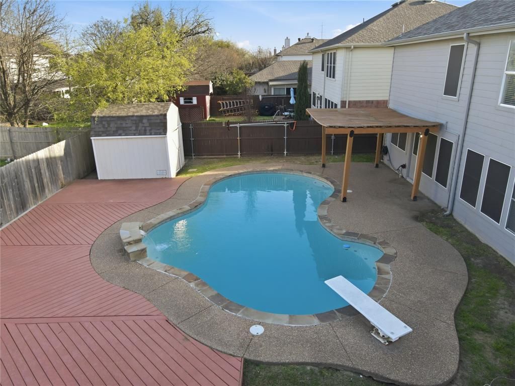 Imagine a lifestyle where your weekends are defined by poolside relaxation and effortless entertaining in your own private oasis. Situated on a spacious corner lot in a quiet neighborhood with no HOA, this beautifully updated home offers the perfect blend of modern comfort and suburban freedom. Recent upgrades shine throughout, including fresh interior and exterior paint, plush new carpet, and stylish luxury vinyl plank flooring. The pristine kitchen is a chef’s dream, featuring sleek granite countertops, a functional center island, a walk-in pantry, and an included refrigerator. Retreat to the oversized primary suite showcasing a soaking tub, separate shower, and a vanity featuring a dedicated makeup station. Every bedroom in this home is generously sized and includes its own walk-in closet, ensuring plenty of storage for everyone. Upstairs, the massive game room provides a versatile second living area for movie nights or play. Step outside to the ultimate entertainment hub: a sparkling pool with a soothing waterfall, a large deck perfect for summer cookouts, and a huge backyard with a convenient storage shed. Peace of mind comes standard with a recently replaced roof. Great location within walking distance to Lost Spurs Park and schools, with quick access to 35W and 170 for a seamless commute. Take a first-person look at this gorgeous home! Click the Virtual Tour link to see the 3D Tour!