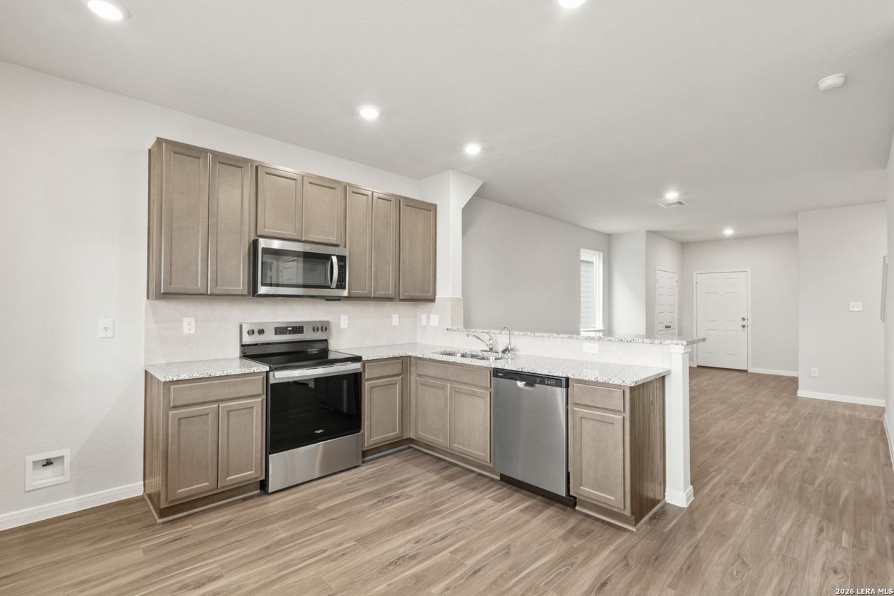 Love where you live in Abbott Place in St. Hedwig, TX! The Woodland floor plan is a spacious 2-story home with 4 bedrooms, 2.5 bathrooms, game room, and a 2-car garage. This home has it all, including vinyl plank flooring throughout the first-floor common areas! The gourmet kitchen is sure to please with 42" cabinets and granite countertops! Retreat to the first-floor Primary Suite featuring granite countertops, a sizable shower, and spacious walk-in closet. Secondary bedrooms have walk-in closets, too! Enjoy the great outdoors with a sprinkler system and a covered patio! Dont miss your opportunity to make Abbot Place your home, schedule a visit today!