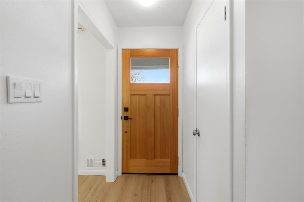 This beautiful, renovated home was thoughtfully designed to enhance the flow of the floor plan while incorporating stylish, modern features throughout. The home has been updated with light oak luxury vinyl plank flooring, crisp white interior paint, and upscale contemporary lighting that creates a bright, cohesive aesthetic. At the heart of the home is the completely updated kitchen, featuring navy blue cabinetry with brushed gold hardware, a farmhouse sink and upgraded stainless steel appliances. Extended cabinetry along the wall includes a built-in wine rack, while the rounded peninsula offers bar-stool seating—perfect for everyday living and entertaining. Recessed lighting and a dedicated coffee bar complete the space. The kitchen opens seamlessly to the family room and overlooks the backyard. The oversized dining room provides exceptional flexibility, easily accommodating an additional seating area, home office, craft space, or playroom. The washer and dryer have been thoughtfully relocated from the kitchen hallway into a spacious utility room-pantry combination, maximizing both convenience and storage. The primary bedroom features dual closets, while the updated ensuite bath showcases a frameless glass shower, oversized shower niche, and upgraded plumbing fixtures. Step outside to enjoy the expansive back patio, ideal for outdoor entertaining. A backyard shed provides excellent additional storage, and a soaker hose has been installed around the foundation for easy maintenance. All of this is located in a highly desirable, centralized area with easy access to both I-635 and US-75—combining comfort, style, and convenience in one exceptional home.