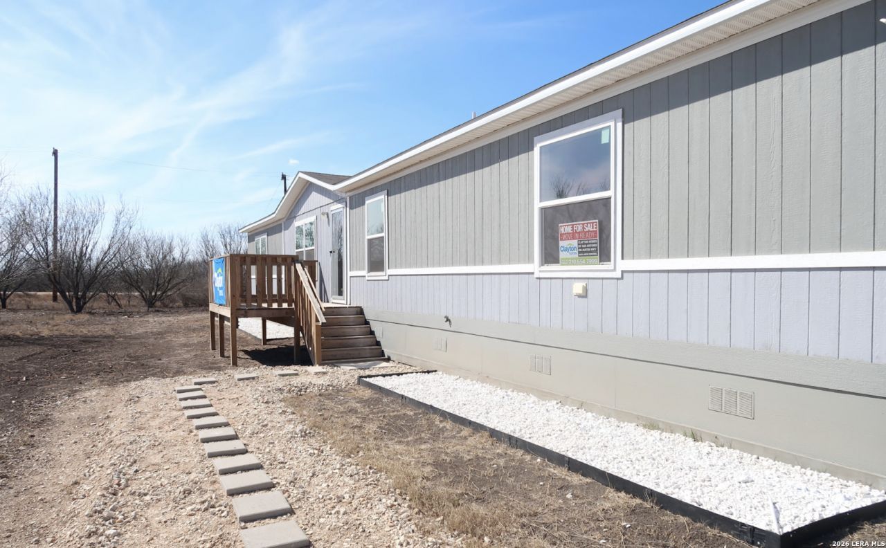 **USDA Eligible! Welcome to peaceful country living in Moore, TX! This brand-new Clayton manufactured home offers 4 bedrooms, 2 full bathrooms, and a bright open-concept floor plan designed for both comfort and functionality. The primary suite is thoughtfully positioned on its own private side of the home, featuring a spacious walk-in closet and separation from the other three bedrooms-perfect for added privacy. The open kitchen flows seamlessly into the living and dining areas, and all kitchen appliances convey, making this home truly move-in ready. Situated on a 1.55-acre corner lot, the property provides exceptional seclusion and tranquility, surrounded by open space and peaceful views. With plenty of room to roam, garden, or unwind, this property offers the ideal balance of quiet country living with convenient access to town amenities. Property is well equipped with an on-site private water well, septic system, and existing electrical - making it truly move-in ready and convenient. The mobile home has been professionally retrofitted and is eligible for financing, offering added peace of mind and flexibility! If youre looking for space, serenity, and a brand-new home to make your own, this one checks all the boxes!