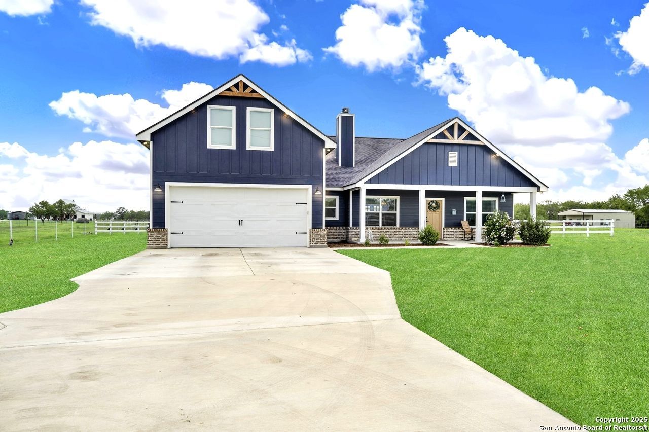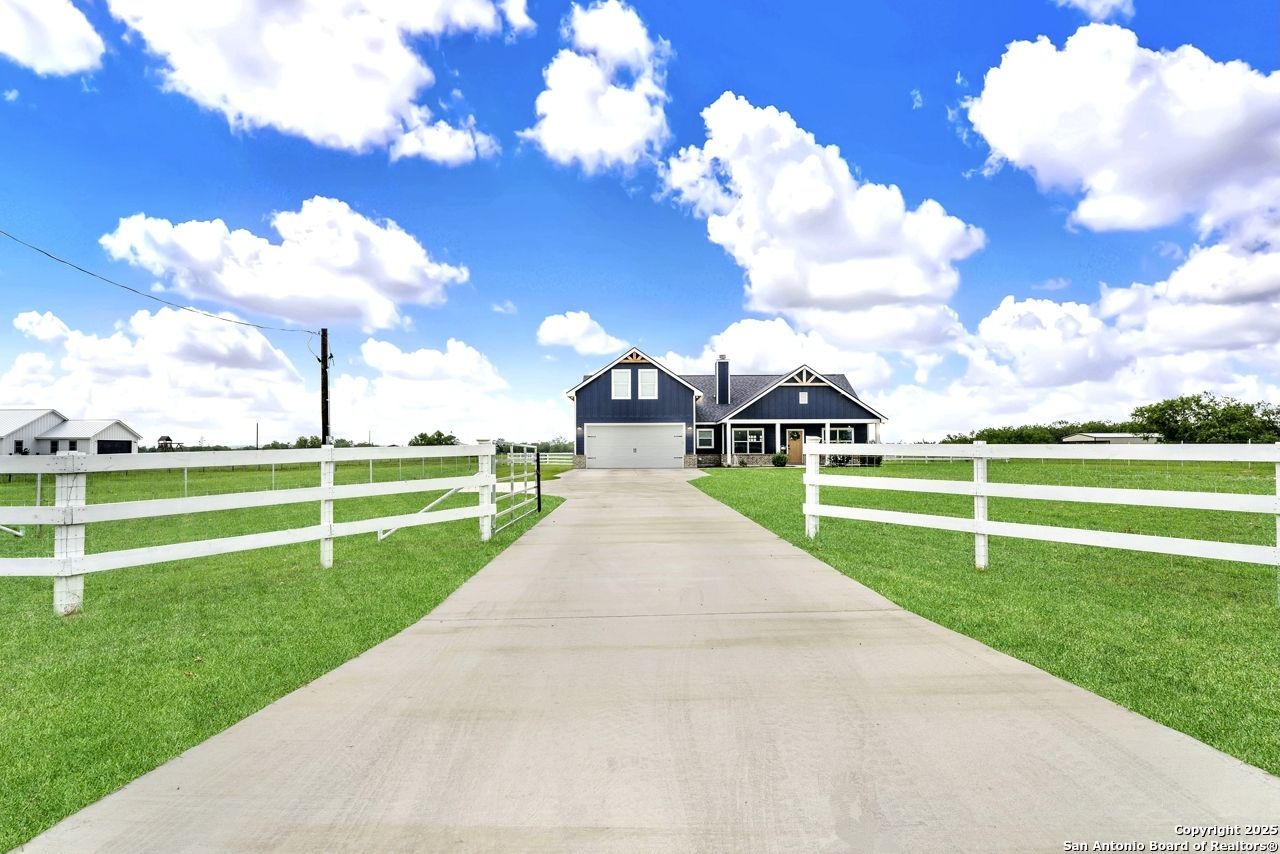 Welcome to this gorgeous Craftsman home! This stunning home perfectly blends farmhouse charm with modern amenities, featuring 4 Bedrooms, 3 Bathrooms, 2 Car Garage, Inground Pool, on 15 acres of land. As you approach, you are greeted by a welcoming front porch adorned with beautiful woodwork, inviting you to relax in the rocking chair and enjoy the peaceful surrounding. Upon entering the home, youre immediately refreshed by the open concept layout with a cozy fireplace, clean fresh paint pallet throughout, and beautiful kitchen! Retreat to the master suite with a spa like ensuite bathroom featuring double vanities, soaking tub and separate shower; with 3 additional bedrooms and 2 full bathrooms for family or guests. Head out back to begin planning your next gathering with an inviting back porch, inground pool, and firepit seating area! True country setting & a must see in La Vernia ISD!