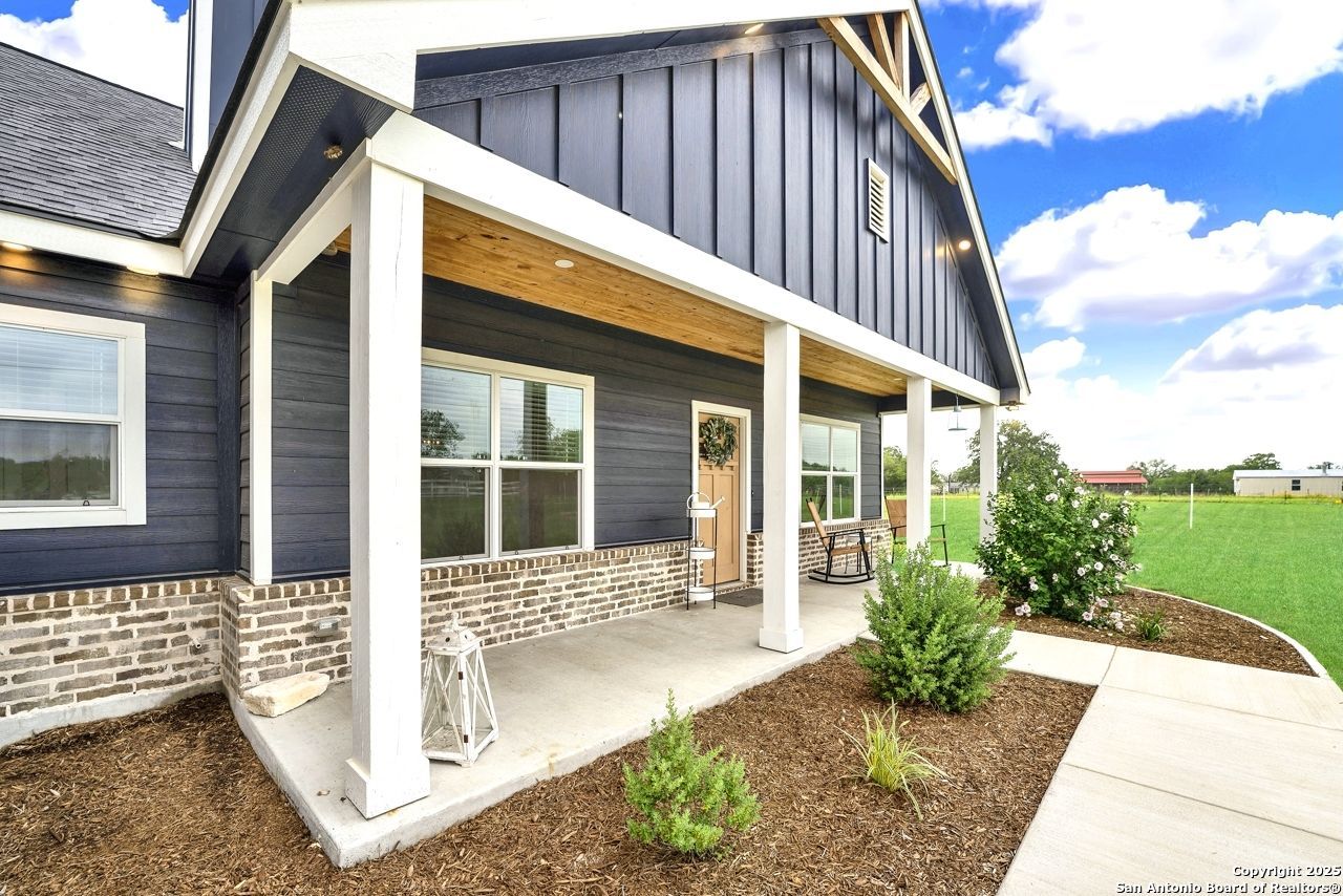 Welcome to this gorgeous Craftsman home! This stunning home perfectly blends farmhouse charm with modern amenities, featuring 4 Bedrooms, 3 Bathrooms, 2 Car Garage, Inground Pool, on at 1 acre lot. As you approach, you are greeted by a welcoming front porch adorned with beautiful woodwork, inviting you to relax in the rocking chair and enjoy the peaceful surrounding. Upon entering the home, youre immediately refreshed by the open concept layout with a cozy fireplace, clean fresh paint pallet throughout, and beautiful kitchen! Retreat to the master suite with a spa like ensuite bathroom featuring double vanities, soaking tub and separate shower; with 3 additional bedrooms and 2 full bathrooms for family or guests. Head out back to begin planning your next gathering with an inviting back porch, inground pool, and firepit seating area! True country setting & a must see in La Vernia ISD!