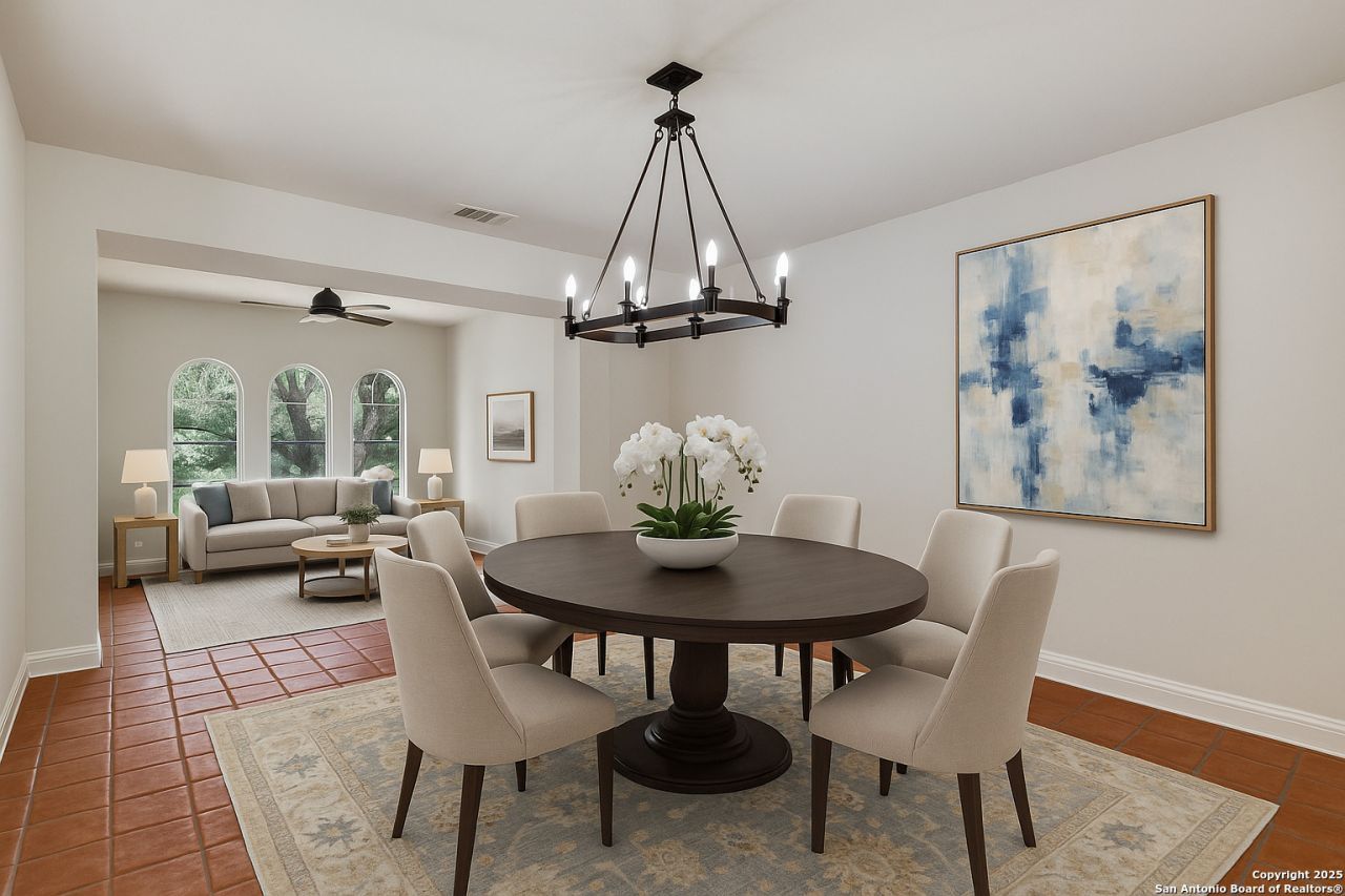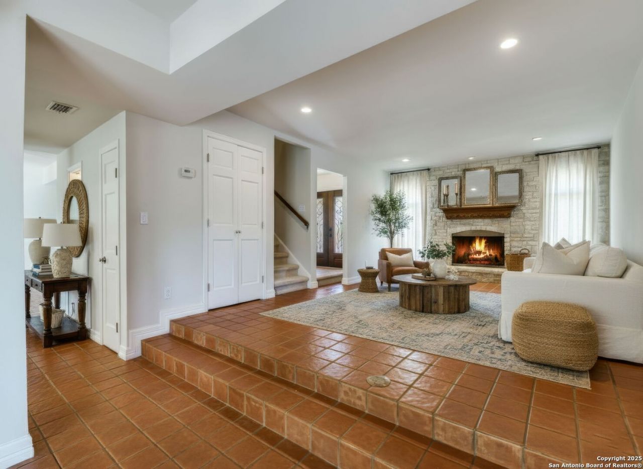 Located in a well-established central San Antonio neighborhood, this thoughtfully updated home offers space and comfort. With easy access to the airport, downtown, and major highways, daily convenience meets peaceful living on an oversized lot that backs to the Lorence Creek Preserve greenbelt-providing privacy and a natural backdrop rarely found this close to the city. The home features a charming rock exterior and covered patio, perfect for outdoor enjoyment. Inside, fresh paint, updated fixtures, and timeless Spanish-inspired details create a warm and inviting atmosphere. Multiple living and dining areas downstairs provide flexibility for family gatherings, entertaining, or quiet evenings at home. The kitchen is bright and functional, offering updated cabinetry to the ceiling, beautiful countertops, stainless steel appliances that have never been used, and large updated windows overlooking the backyard. Upstairs, updates include new windows and brand-new carpet installed in 2025. The yard has been recently cleaned and trees trimmed, making this home truly move-in ready with room to personalize over time. An added local perk - see Shadow Cliff Swim & Tennis Club for a close & convenient pool membership!