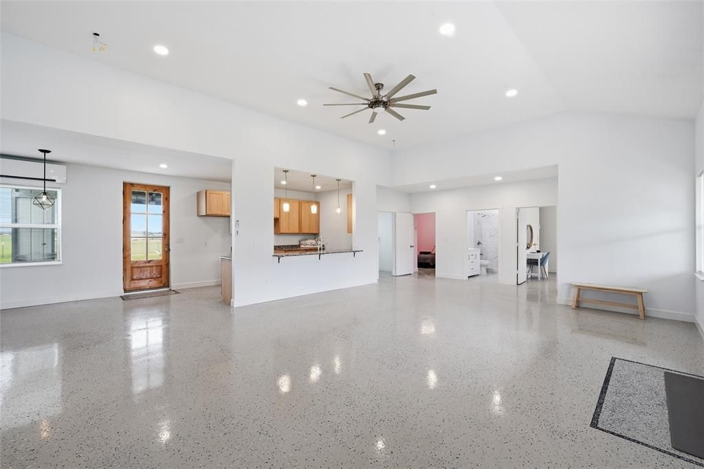 Experience the perfect blend of modern country living and functional design with this stunning barndominium located in Leroy, TX within West ISD. Surrounded by peaceful countryside and breathtaking views, this property offers the kind of tranquility and space that’s increasingly hard to find.The main home features four generously sized bedrooms and two full bathrooms, thoughtfully designed with comfort and durability in mind. Inside, you’ll find an open-concept layout that seamlessly connects the kitchen, dining, and living areas—ideal for both everyday living and entertaining. The epoxy-finished floors not only add a sleek, modern touch but are built to withstand heavy use while remaining easy to maintain.Step outside and take in the charm of the expansive front porch that stretches across the length of the home—perfect for relaxing mornings, evening sunsets, or gatherings. The home is surrounded by a beautifully maintained garden with established plants, all enclosed within a fully fenced property, offering both privacy and functionality.Adding incredible value and versatility, the property includes a separate guest house complete with one bedroom, a full bathroom, full kitchen, and a comfortable living area. Whether used for extended family, guests, or as an income-producing opportunity, this additional space opens the door to multiple possibilities.A covered, fully insulated garage provides ample space for storage, projects, or vehicle protection. Built with durable metal roofing and siding, this home is designed for longevity and low maintenance.From the wide-open views to the peaceful setting, every aspect of this property invites you to slow down, spread out, and truly enjoy country living at its finest.