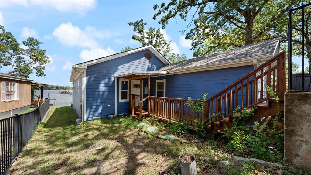 Lake life, your way! This waterfront property was carefully and structurally designed for plenty of room and long lasting memories with family and friends. The shoreline is secured with a durable vinyl retaining wall, and the centerpiece of the property is the multi-level dock, built with stainless steel posts for strength and longevity. It features two boat slips (one with a lift and one without), two jet ski slips, a tanning deck with jump off gate, and chains in place for a removable shade cover perfect for sun filled afternoons or shaded relaxation. Per seller, dredging has been completed, and the property has had water, even in the rain drought years, ensuring year-round enjoyment and worry-free access. Inside, thoughtful upgrades enhance both comfort and convenience. Spray foam insulation improves efficiency, while the bedroom near the living room is insulated for extra sound privacy. The kitchen is designed with functionality in mind, featuring large lower drawers in place of traditional cabinets for easy access and added storage. Beyond the main living spaces, the home includes an impressive amount of extra storage, ample room for lake gear, seasonal items, or anything you want to keep tucked away yet easily accessible. AN EXCITING BONUS: per seller, the boat, jet skis, kayaks, and other lake essentials may convey with the property—making this a true turnkey lake experience. This property is more than just a home; it’s a flexible retreat that adapts to your lifestyle. Host unforgettable gatherings, enjoy peaceful getaways, or settle in for full-time lake living. From sunrise Bible Study on the deck to afternoons on the water and evenings with friends, this home is ready for whatever lake life means to you.