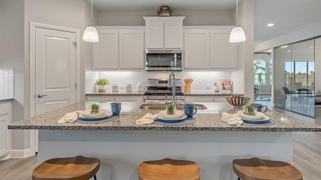 Brand-new D.R. Horton home in the Morningstar community located in highly sought-after Aledo ISD! The Crownpoint floorplan, Elevation G with an estimated Spring completion, offers a well-designed single-story layout featuring 4 bedrooms, 2 bathrooms, and a 2-car garage, with flexible living spaces ideal for today’s lifestyle. The open-concept design connects the spacious family room to the dining area and modern kitchen, creating an inviting space for everyday living and entertaining. The kitchen is equipped with 42” upper cabinets with crown molding, quartz countertops, a ceramic tile backsplash, stainless steel appliances, and an electric range, along with a pantry for added storage. Luxury vinyl plank flooring extends throughout the main living areas, providing both durability and style. The private primary suite includes a well-appointed en-suite bath and walk-in closet, while three secondary bedroom-one of which may be used as a study or flex space offers versatility for family, guests, or a home office. A covered patio enhances outdoor living, and thoughtful design details, modern finishes, and energy-efficient construction complete this impressive home. Morningstar residents enjoy resort-style pools, playgrounds, parks, a dog park, and scenic walking trails.