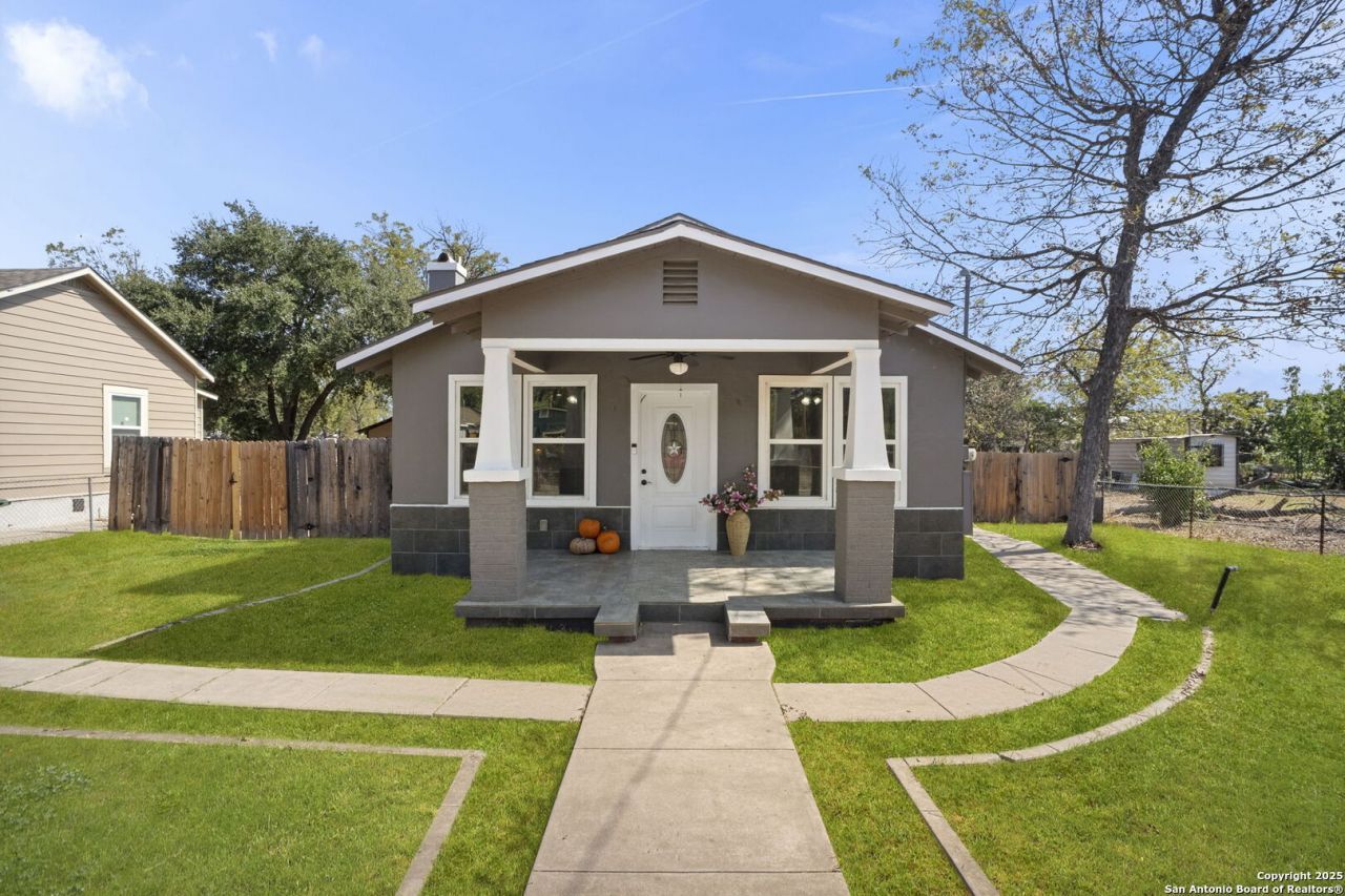 CHARMING AND UNIQUE Move in Ready Renovated Home built in 1942! close to Downtown San Antonio. Gorgeous, refinished wood floors that add such a unique feeling as you enter this well-maintained home. The spacious kitchen boasts a gas stove, solid custom cabinets, granite and backsplash PLUS large island with gorgeous granite providing extra counter space and plenty of room for visiting with your guests. The Original wood fireplace with stone mantle radiates warmth throughout the home. This charmer has 3 bedrooms and 3 full bathrooms PLUS a 4th room which can be whatever you need it to be-Office, bedroom, craft room, nursery. Plenty of room for storage in closets throughout the home. The large backyard is fenced. Original Detached 2 car garage with storage room. Texas Pecan Tree in front yard! Home is walking distance to the famous Father Albert Benavides Park and Playground. Via Bus stop nearby.