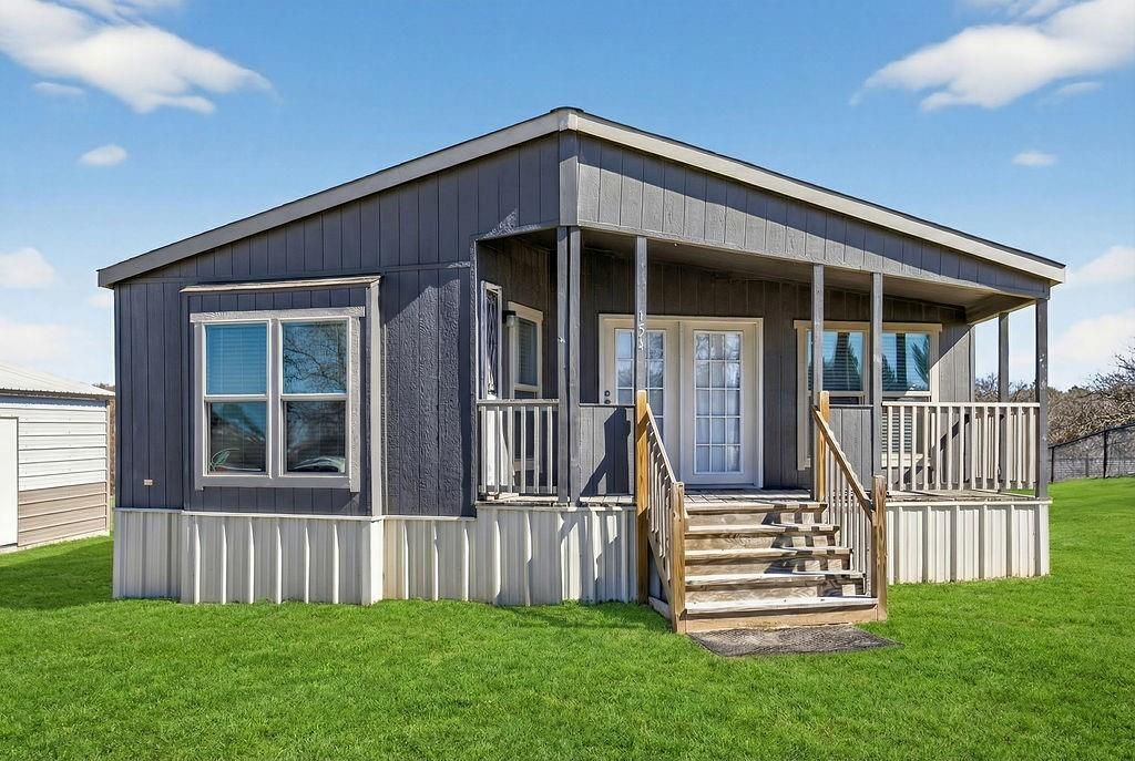 Enjoy peaceful country living on 1.29 acres in Springtown! This lightly lived-in 2022 double-wide offers a functional open-concept layout with spacious living, dining, and kitchen areas. The kitchen features abundant cabinetry, a large island with breakfast bar seating, stainless steel appliances, and a walk-in pantry. The primary suite accommodates a king-sized bed and includes dual vanities, a garden tub, separate walk-in shower, and walk-in closet. Two secondary bedrooms are well sized and located near the second full bath. Multiple built-in desk areas provide flexible work-from-home options.Property includes a two-car carport and a large storage building on a concrete slab. Oversized utility room offers space for full-size washer and dryer plus extra refrigerator or freezer. A great blend of modern comfort and country space.