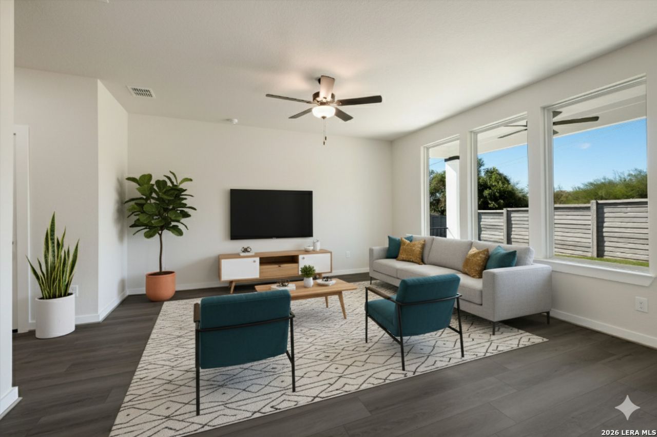 ** READY NOW ** Welcome to The Lancaster, a spacious two-story home designed for modern living, located on a cul-de-sac homesite in NE San Antonio. Youll find all bedrooms conveniently located upstairs. The master suite features a shower with separate dual vanities. The downstairs features a seamless open-concept design, where the kitchen, dining room, and living room blend together perfectly for entertaining. The kitchen and bathrooms showcase elegant grey cabinets paired with stunning white quartz countertops and decorative backsplashes. Step outside to enjoy the covered patio, an ideal spot for morning coffee or year-round gatherings. With its smart layout and modern comforts, The Lancaster provides the space and versatility todays needs.