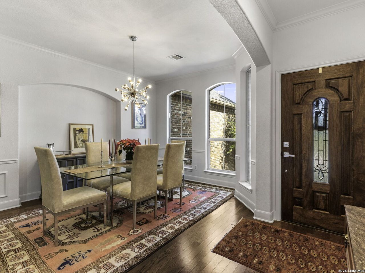 Stunning 5-Bedroom Home in Sought-After Sonoma Ranch. This beautifully designed 5-bedroom, 3.5-bath home offers generous space, thoughtful design, and a seamless layout in sought-after Sonoma Ranch. A grand entry opens to the formal dining area, with sightlines through the formal living space and enclosed porch to the backyard, creating a light, bright, and welcoming first impression-perfect for gathering and entertaining. The layout flows naturally into the main living areas, creating a clean, cohesive feel throughout the first floor boasting seamless hard-surface flooring extending through the entry, kitchen, dining, and family room, offering durability and easy maintenance with no carpet in the main living spaces. The heart of the home features a sleek, stylish kitchen with modern cabinetry, countertop bar seating, and a sunny breakfast area, opening effortlessly to the spacious family room, highlighted by a fireplace with a stone hearth. Just beyond the living area, the enclosed porch offers additional living space and features a beautiful wood ceiling, making it a comfortable, year-round retreat that opens to a serene patio and ample backyard. The primary suite is conveniently located on the main level and offers a private retreat with a spacious bath featuring his-and-hers vanities, abundant counter space, and generous closets. The primary bedroom features hard-surface flooring distinct from the main living areas, providing durability and comfort, with private access to the enclosed porch. Upstairs, youll find four very large secondary bedrooms, two full baths, and a spacious game room, offering flexibility for family living, guests, or work-from-home needs. The second level features carpeted bedrooms with tile bathrooms. Located in the highly desirable Sonoma Ranch community and zoned to top-rated NISD schools, this home offers space, functionality, and a layout designed to grow with you.