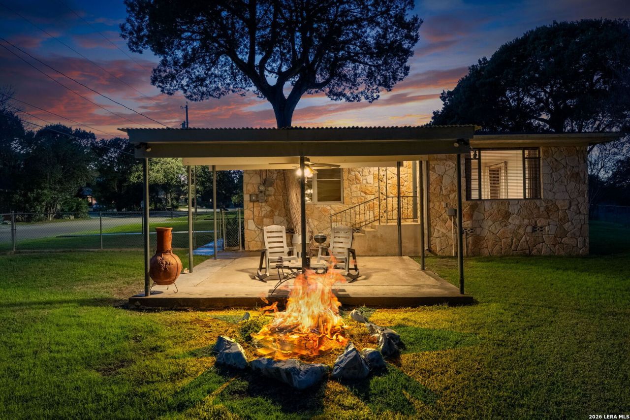 Situated on the Hill above Landa Park, this well-located New Braunfels home offers a rare combination of space, privacy, and proximity to one of the citys most beloved destinations. Tucked away at the end of a dead-end street with no back neighbors, the generous lot provides a lush, landscaped yard complete with a sprinkler system, gutters, and mature greenery that creates a true sense of retreat, without sacrificing convenience. Inside, the 3-bedroom, 2-bath layout features wood floors and hard surfaces throughout, spacious rooms, and two separate entryways that add flexibility and character. The living room is anchored by a striking wood-burning fireplace, creating a warm and inviting focal point. The kitchen is thoughtfully designed with granite countertops, abundant cabinetry, and a walk-in pantry, offering both function and storage. Step outside to enjoy the patio slab and pergola, ideal for relaxing or entertaining in the beautifully maintained backyard. The home backs up to Panther Canyon Trail, which covers over 49 acres and is home to many native plants and wildlife. No HOA, prime location near Landa Park, downtown New Braunfels, and local amenities; this is a standout opportunity in one of the areas most recognizable and desirable settings.