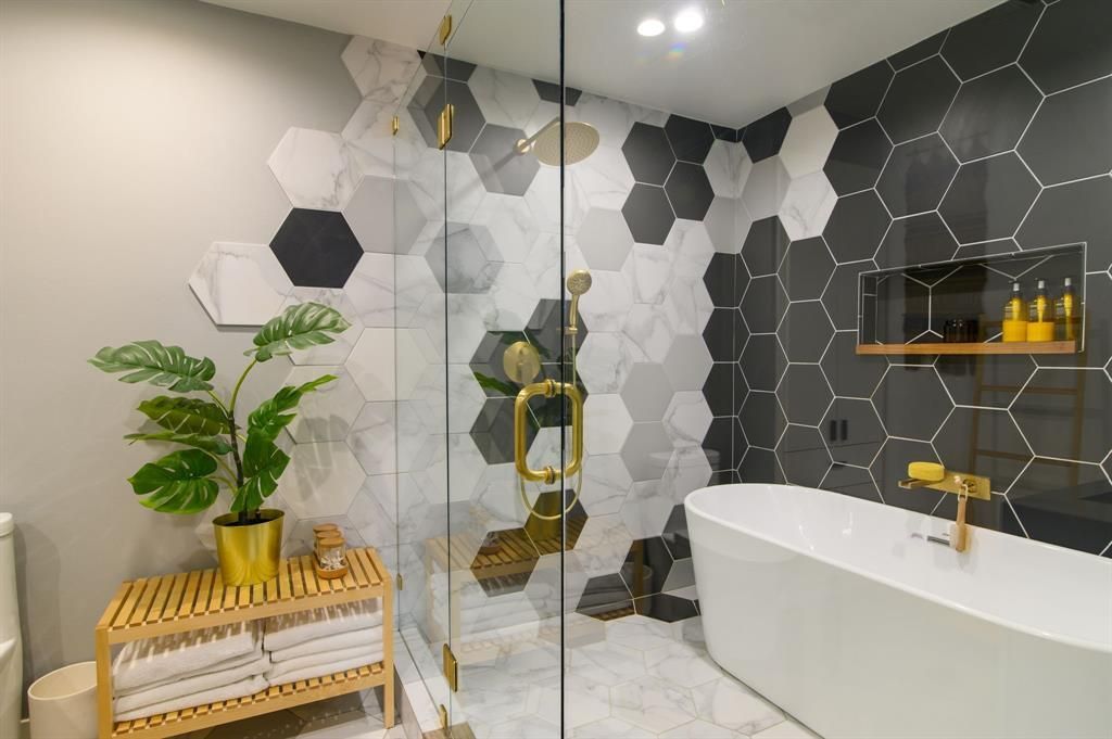 *Available for move-in June 5th!* Midcentury modern completely renovated down to the studs in 2018. This one-story home is located in Kiest Park, surrounded by rolling hills, luscious greenery, and easy to walk trails. 10-minutes from Bishop Arts District and 12-minutes to Downtown Dallas. The open living concept is anchored by sleek, wood-grain built-in cabinetry paired with striking, veined quartz countertops, creating a seamless flow into the spacious living and dining areas. The dining space is flanked by an original brick wall, thoughtfully painted white to add texture while keeping the palette light and modern. The kitchen is both stylish and functional, featuring top-tier appliances including a Viking range and a whisper-quiet Bosch dishwasher, all designed to support everyday living and effortless entertaining. There is no carpet anywhere and all floors are wooden tile laid in a herringbone pattern. The primary bedroom is located in the back of the home and has an ensuite bathroom that is a true spa-level retreat. This stunning bathroom features a freestanding soaking tub set inside a dramatic glass-enclosed wet room. Oversized hexagonal tile in a striking mix of marble, charcoal, and soft gray creates bold visual interest from floor to ceiling. Dual rainfall shower heads with luxe brass fixtures offer a hotel-worthy experience, while custom built-in niches and shelving provide both function and style. Clean lines, designer finishes, and thoughtful lighting make this space feel elevated, intentional, and undeniably luxurious. The home sits on an almost quarter acre lot, which really shines through in the backyard. This is a peaceful, private retreat with a wide stretch of open lawn framed by mature trees and a fully enclosed chain-link fence. Quiet and tucked away, this space feels serene and unbothered. With plenty of room to entertain, garden, or let pets roam freely, the yard provides both flexibility and tranquility in a natural setting.