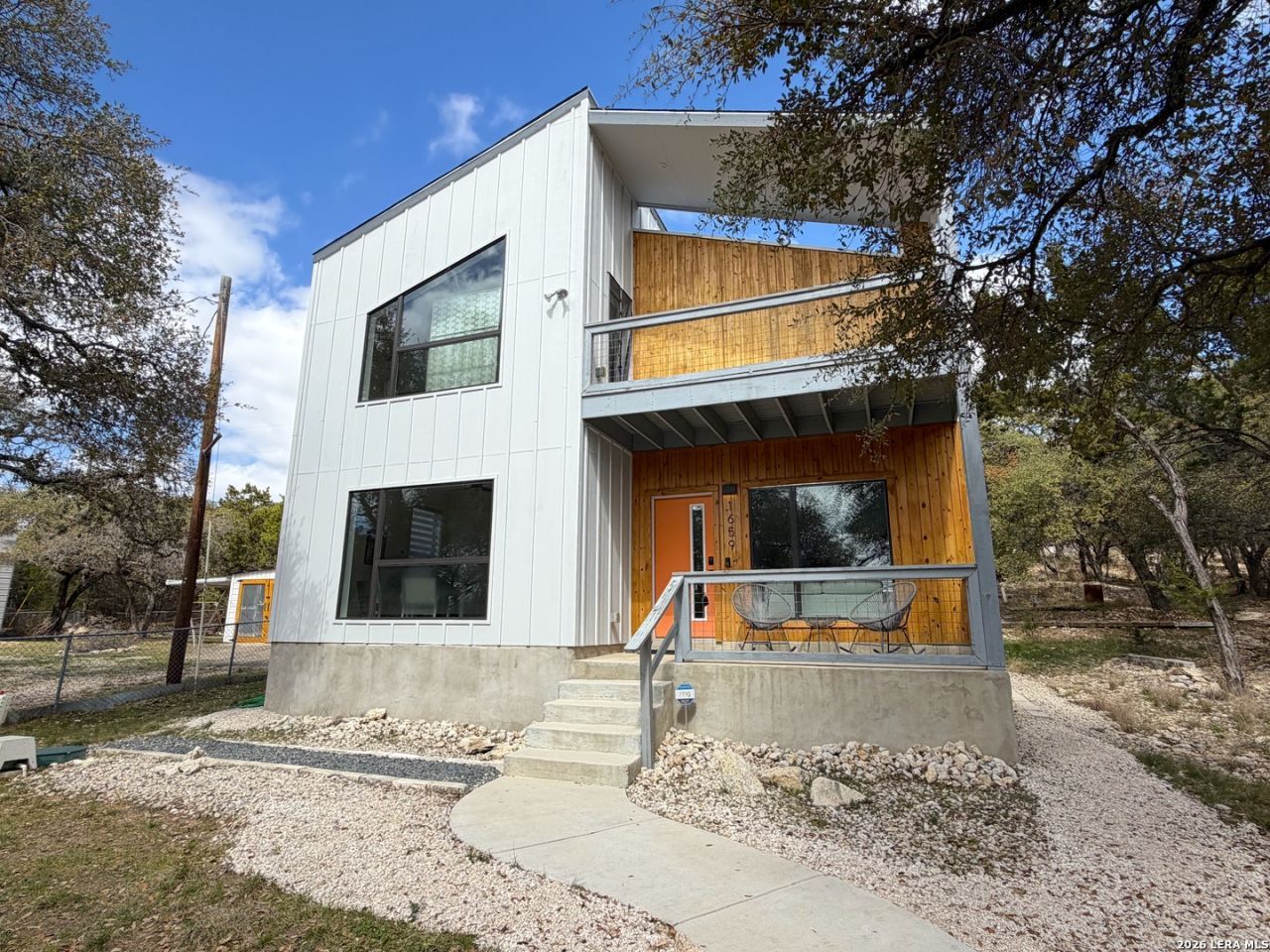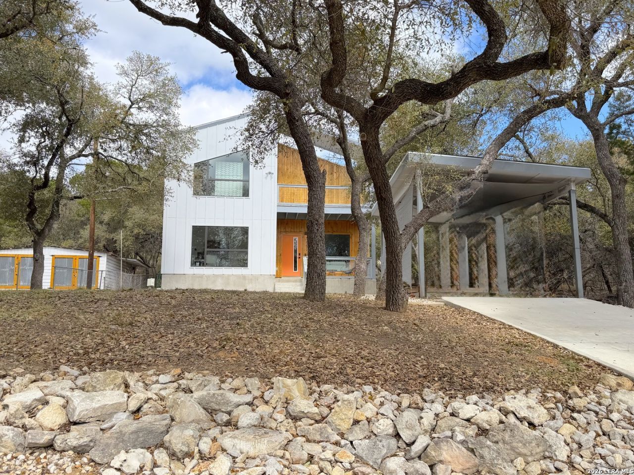 Perched atop a hill in beautiful Canyon Lake Tx, this contemporary modern home delivers a unique Hill Country feel. The thoughtfully designed floorplan features large custom windows that flood the interior with sunlight and highlight the soaring ceilings in the main living space which includes two of the bedrooms, a full bathroom, laundry room, kitchen, and living area- all on the main level-creating comfortable everyday living and easy entertaining. Designed to capture the surrounding views the spacious primary suite is privately situated upstairs and features its own full bathroom, and private balcony- offering a peaceful retreat above the rest of the home. Outside, a convenient carport provides covered parking and added functionality. With its clean modern design, bright and airy interior, and hilltop setting, this home is perfect for those seeking contemporary living in the scenic Hill Country or an income producing property with short-term rental potential. Less than 1 mile from the popular Comal Park on the lake and boat ramp #5. Just a 15 min drive to concerts and tubing at Whitewater and the Horseshoe on the Guadalupe River. Conveniently located on the South Side of Canyon Lake for easy access to the nearby cities of New Braunfels and San Antonio. Come take a look for yourself at the open house on March 14th from 11am to 2pm!
