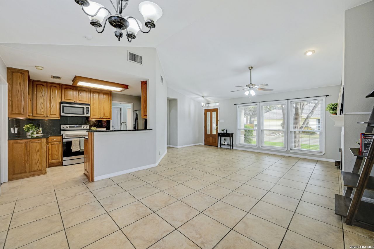 OPEN HOUSE WEEKEND: Saturday & Sunday, (March 7 & 8), 1 - 3 PM *Beautiful one-story home nestled in a private, serene setting! This inviting residence features a spacious open-concept living and dining area filled with natural light, offering the perfect space for both relaxing and entertaining. The home includes 3 bedrooms and 2 bathrooms, along with ceramic tile flooring, and granite countertops. Step outside to enjoy the covered patio-ideal for summer evenings-overlooking a peaceful greenbelt with no direct neighbors behind or beside you, providing added privacy and tranquility. Built in 1994, this charming home offers both comfort and convenience.