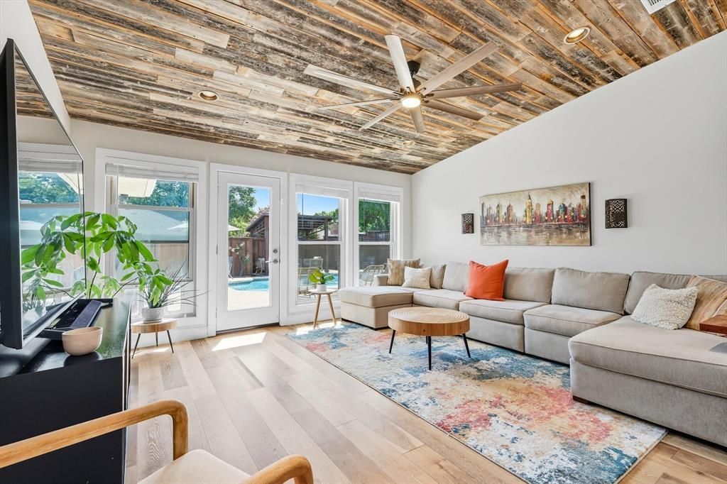Welcome to this beautifully updated one-story home in the desirable Pitman Creek North subdivision of Plano! This charming residence blends timeless architectural character with modern updates throughout. Featuring 3 bedrooms, 2 full baths, a dedicated home office, 2 living areas, 2 dining areas and a 2-car garage, it offers a spacious and functional layout designed for today’s lifestyle. Step inside to discover a rare and delightful feature — a central interior atrium with a skylight that fills the home with natural light and creates a peaceful indoor-outdoor ambiance. This signature element of 1980s design provides a serene focal point, perfect for morning coffee, indoor gardening, a reading nook or simply enjoying the changing seasons from the comfort of your home. The inviting living room with a cozy fireplace flows into an updated kitchen with granite countertops, ample cabinetry, and a bright dining area complete with a built-in for more storage and the perfect spot for a coffee bar! Another living area at the back of the home is a perfect spot to watch your favorite TV show. The private primary suite offers an updated en-suite bath and ample closet space, while two secondary bedrooms provide comfort and flexibility. Work from home in the quiet, dedicated office with natural light. Enjoy Texas summers in your sparkling backyard pool, ideal for entertaining or relaxing weekends. Recent updates throughout add style and function, while maintaining the character that makes this home unique. Pool refinished in 2023, HVAC replaced 2020, Water Heater replaced 2016, Windows replaced 2016. Situated in a tree-lined neighborhood near parks, trails, and top-rated Plano ISD schools — this move-in-ready gem is a must-see!