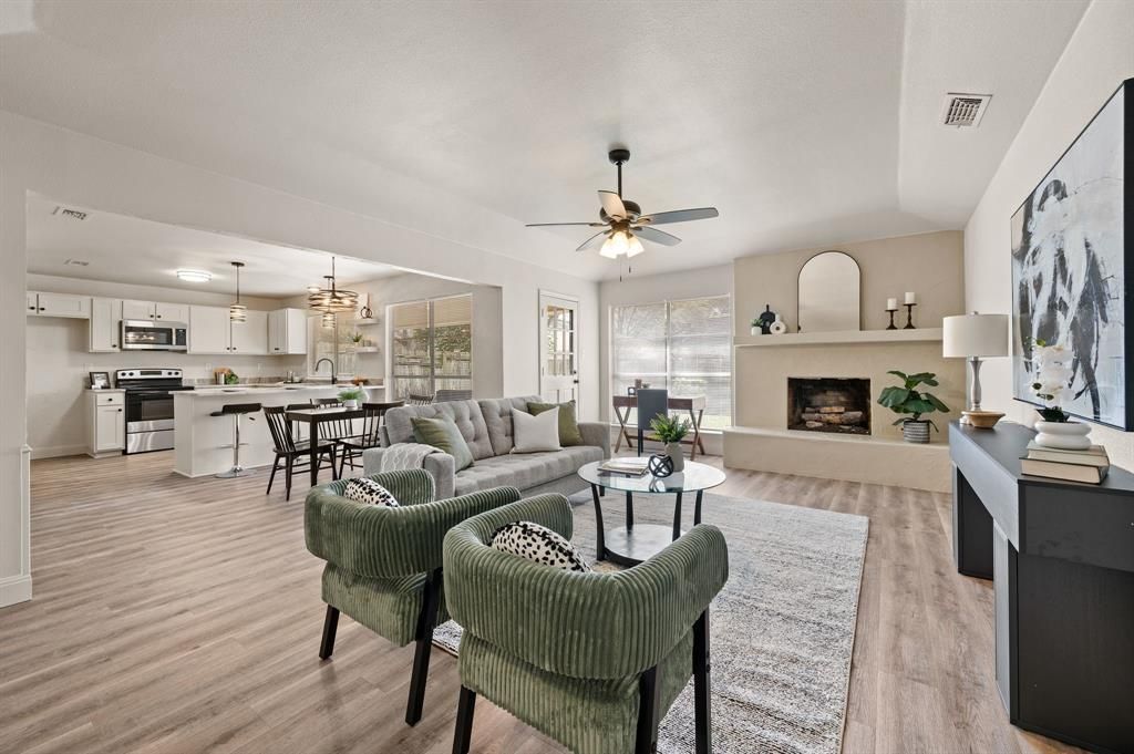 Welcome to this beautifully updated, move-in-ready 3-bedroom, 2-bath home located in the desirable Bell Manor community. Just blocks from the elementary school and with convenient access to Highway 121, this home offers both comfort and everyday convenience. Inside, you’ll find a light-filled, open layout designed for easy living and entertaining. Recent updates include a new roof, luxury vinyl plank flooring throughout, fresh interior and exterior paint, and fully renovated bathrooms, giving the home a clean, modern feel from the moment you walk in. The eat-in kitchen is a standout feature, showcasing custom cabinetry, high-end leathered granite countertops, new appliances, and updated hardware that blend style with functionality. The spacious living areas flow seamlessly together, creating a warm and inviting space perfect for gatherings or relaxing at home. Step outside to a peaceful, tree-lined backyard that provides the perfect setting for morning coffee, weekend barbecues, or unwinding at the end of the day. With thoughtful updates, a welcoming atmosphere, and a prime location near schools, shopping, and dining, this turnkey home is ready for its next owner to enjoy. Come see it today and imagine making it your own.