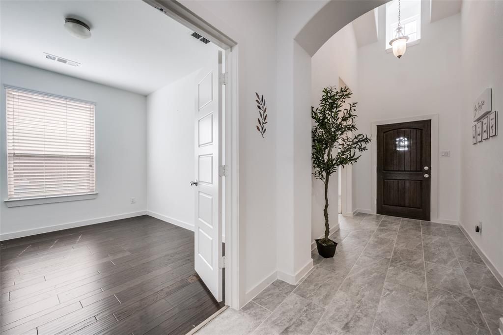Welcome to this beautifully maintained two-story home located in the highly sought-after Northwest ISD. Offering 5 spacious bedrooms plus a dedicated study, this thoughtfully designed home provides the perfect balance of comfort, functionality, and style. Open-concept with island in kitchen, corner fireplace, 2 eating areas, a backyard with persimmon, peach and fig tree. Very well maintained home.The open floor plan features elegant ceramic tile flooring throughout the main living areas, creating a timeless look while ensuring easy maintenance. The inviting living room with a cozy fireplace flows seamlessly into the kitchen, which offers ample cabinetry, pantry space, a breakfast bar, and an eat-in dining area—ideal for both everyday living and entertaining.Recent updates provide added value and peace of mind, including newly replaced smoke detectors, a brand-new roof, a new HVAC motor, and a modern tankless water heater for improved energy efficiency.Step outside to enjoy a unique backyard garden oasis featuring fertile vegetable beds and fruit-bearing fig, persimmon, and peach trees. The front yard is enhanced by a beautiful Peggy Martin climbing rose, adding charm and curb appeal. The backyard also includes a metal storage shed and compost drum, perfect for gardening enthusiasts.The 2-car garage includes an additional 8x8 workshop and shelving area, providing excellent space for storage, tools, or hobbies.Located in the desirable Harvest community, the HOA includes Internet and Frontier Cable TV, and residents enjoy fantastic amenities including a community pool, jogging and bike paths, and parks. A community jogging path and park are located exactly opposite the home, offering convenient outdoor recreation just steps away.With quick access to I-35 and close proximity to Northlake Commons shopping, dining, and medical offices, this home blends peaceful suburban living with everyday convenience.