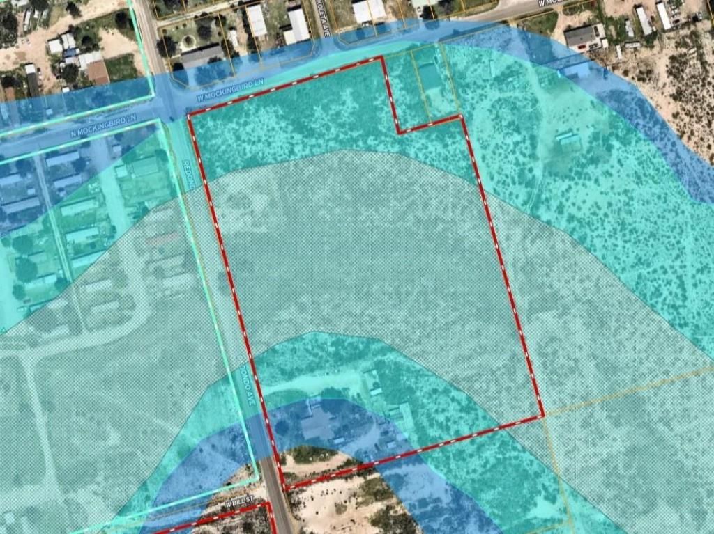 9.54 acres just north of intersection of N Redondo & W 16th. Two structures on property: one fire-damaged house plus an accessory structure. 98% of property in flood zone. Approximately 5.4 acres (56% of parcel) in the floodway. Roughly 0.25 ac at the SE corner of property on N Redondo unaffected by flood plain.