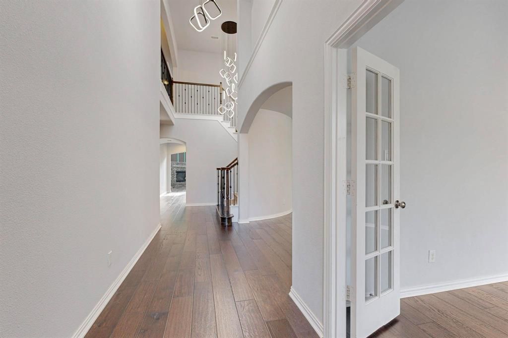 Move-In Ready 5-Bedroom, 4-Bath Home in Frisco ISD Beautifully updated 5-bedroom, 4-bath home feeding into the highly rated Frisco ISD. This well-designed floorplan includes a dedicated office, an expansive media room that can also function as a 6th bedroom, and a private downstairs guest bedroom with a full bath, ideal for guests or multigenerational living.The contemporary kitchen features premium granite countertops, sleek cabinetry, and modern design elements throughout. The main living area is highlighted by an upgraded wooden-slat statement fireplace, adding warmth, texture, and a striking modern focal point. Designer accent walls, accent-painted rooms, and modern chandeliers in both the entryway and dining area elevate the home’s refined aesthetic and create a luxurious, cohesive feel. Conveniently located near medical facilities, grocery stores, and numerous dining options, this home delivers modern style, functionality, and an exceptional location within one of the area’s most desirable communities.Smart Refrigerator included. House has water softener and RO.