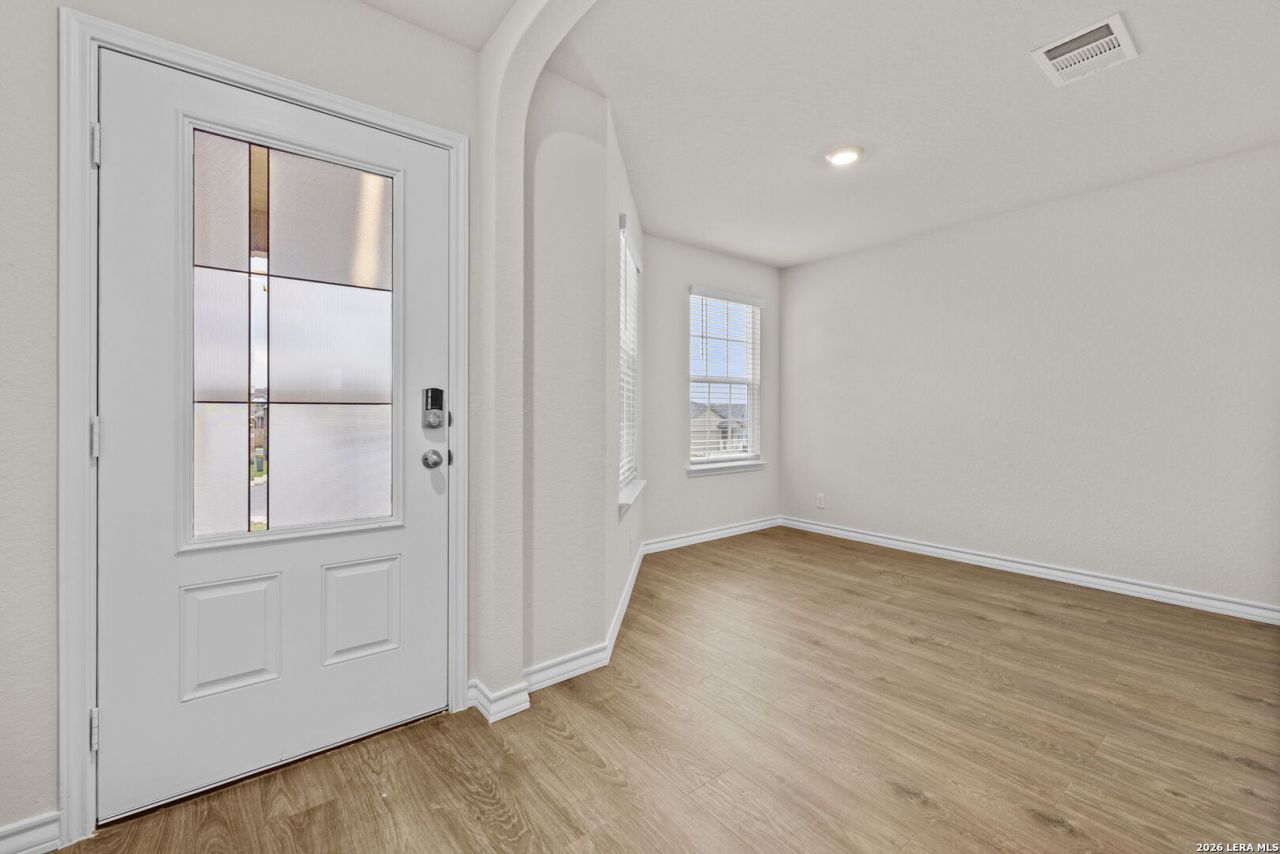 Welcome to The Walsh, a stunning two-story home located at Redbird Ranch in San Antonio, TX. This floor plan offers 2-car garage, and a full yard landscaping and irrigation package, ensuring that your home has instant curb appeal. A spacious covered front porch welcomes you inside this 4 bedroom, 2.5 bathroom home where youll find 2323 square feet of living space. Follow the entry hallway past a beautiful formal dining room and into the open kitchen featuring stainless steel appliances, quartz countertops, stylish white subway tile backsplash, spacious corner pantry, tons of cabinet space and a large eat-in breakfast bar. The kitchen opens to a spacious living room, complete with a stunning vaulted ceiling and easy-maintenance hard surface flooring. The living room extends to a lengthy covered back patio, perfect for outdoor dining or just simply keeping an eye on the kids while they play outside. The private main bedroom suite is located downstairs off the family room and offers dual vanities, a separate tub and walk-in shower, ceramic tile flooring, and a storage-friendly walk-in closet with shelving. Head upstairs to find a spacious game room or office area, a second full bath, and three large secondary bedrooms with quality carpet and walk-in closets. Additional features of The Walsh include 2-inch faux wood blinds throughout the home, luxury vinyl plank flooring in entryway, family room, kitchen, and dining room, ceramic tile at all bathrooms and utility room, and pre-plumb for water softener loop. Youll enjoy added security in your new home with our Home is Connected features. Using one central hub that talks to all the devices in your home, you can control the lights, thermostat and locks, all from your cellular device. *Seller is willing to assist with closing costs or a rate buy-down through preferred lender with an acceptable offer. *