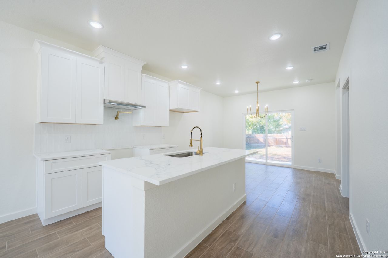 **OPEN HOUSE** FRI. 02/27/26 11-1PM **Tour this stunning home and discover exactly how to make it yours-all while enjoying complimentary refreshments.** A newly built single-story home in Somerset, Texas-a peaceful, tight-knit community known for its welcoming charm and small-town feel. From the moment you arrive, this home makes a bold statement. A stone-accented front exterior with sleek black trim and a covered porch sets the tone for whats inside-modern, stylish, and thoughtfully designed. Step inside and youre immediately greeted by the open-concept living space, designed to make the most of natural light and flow. Warm-toned wood-look tile flooring stretches throughout the entire home, complemented by crisp white walls and dramatic black five-panel doors finished with gold handles-elevating every detail. At the front of the home, the living room welcomes you with a striking black modern chandelier-a bold design element that anchors the space. It opens seamlessly into the kitchen, where clean lines and upscale finishes define the heart of the home. A large white quartz island sits at the center, offering a natural gathering point. The extended overhang is perfect for casual seating, while the backdrop of white shaker-style cabinetry, a sleek range hood, and a glossy textured backsplash creates a crisp, contemporary look. Recessed lighting throughout the entire area completes this space. Just beyond the kitchen, the dining area offers an intimate, sunlit space beneath a glamorous gold chandelier. Oversized sliding glass doors open directly to a fenced backyard, extending your living space outdoors. Tucked away at the rear of the home for added privacy, the primary suite offers a peaceful retreat. A striking gold multi arm chandelier becomes a focal point, while windows draw in soft natural light. The ensuite bath features a walk-in shower wrapped in elegant marble-look tile, a built-in niche, a horizontal privacy window, and a sleek single vanity with white cabinetry. Two additional bedrooms offer comfortable, well-lit living quarters-each one featuring a unique black chandelier and spacious closets. A shared full bathroom connects them, complete with a soaking tub and shower combination surrounded by matching marble-look tile for a unified, modern feel. Step outside to your private backyard -fully fenced and complete with a covered patio. With mature trees and plenty of space to entertain or garden, this outdoor space is ready for you to enjoy year round. With no HOA restrictions, 20035 this home blends simplicity with style in one of Somersets most inviting neighborhoods. Your next chapter could begin right here.