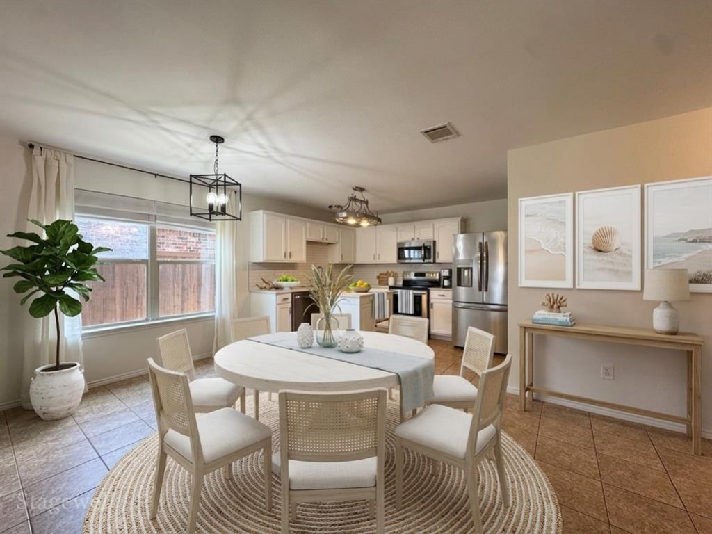 $5,000 in Buyer Closing Costs with good offer! Cozy and well maintained home in family friendly community with an abundance of amenities just 25 minutes from downtown Dallas. Feel all the warmth of this 3 bed 2 bath home the moment you walk in with the open concept kitchen and dining area that blends seamlessly into the warm and inviting living room. Kitchen boasts of white traditional style cabinets, white ceramic subway tile, island for prepping meals, and a French door style refrigerator that conveys with the home. Luxury vinyl plank floors in the living area, new wood fence in the backyard, and new roof are a few of the items that show just how impeccably kept this gorgeous home is. Enjoy all the wonderful community amenities that include pools with water slides, playgrounds, fitness center, walking trails, and ponds just to name a few.
