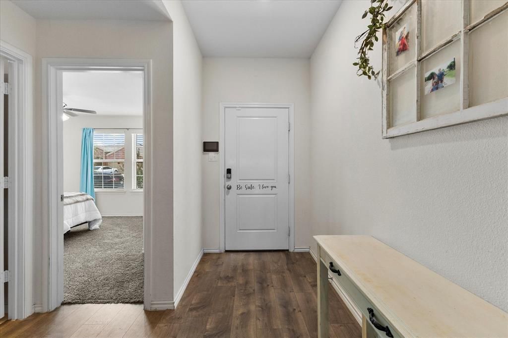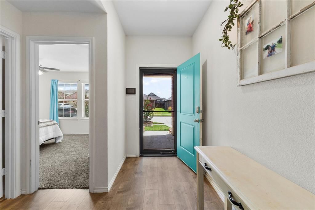 Discover a perfect blend of rustic charm and modern convenience in this beautifully designed 4 bedroom, 2 bath home, complete with a 2 car garage. This property boasts an inviting brick and stone façade, exuding sleek curb appeal that catches the eye from the moment you arrive. Step inside to find a thoughtfully laid out, open, split concept floor plan that feels both spacious and intimate. The large kitchen serves as the heart of the home, featuring a magnificent island that seamlessly flows into the cozy living area. This open concept enhances the home’s airy feel, making it perfect for both everyday living and entertaining. The generous primary bedroom is a true retreat, highlighted by an elegant barn door leading to an ensuite bath. Indulge in the oversized shower and enjoy the convenience of a walk-in closet, providing ample storage for all your needs. The secondary bedrooms offer a cozy atmosphere, ideal for relaxation or welcoming guests. Functional details add to the home's appeal with a spacious laundry room, ensuring practicality without sacrificing style. The property’s exterior complements its warm interior, with a perfect combination of rustic elements and contemporary design. Escape to your backyard retreat, enjoy the extended patio with pergola perfect for weekend cookouts! This remarkable property meets every expectation. Located just minutes from I30 and Rockwall.